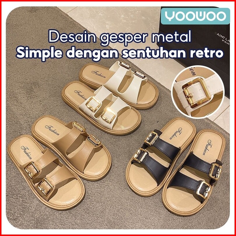 Yoowoo Sandal Wanita Kekinian Sandal Wanita Korean Style Sandal Selop Wanita Sandal Gesper Sabuk Sol Tebal Retro Sandal