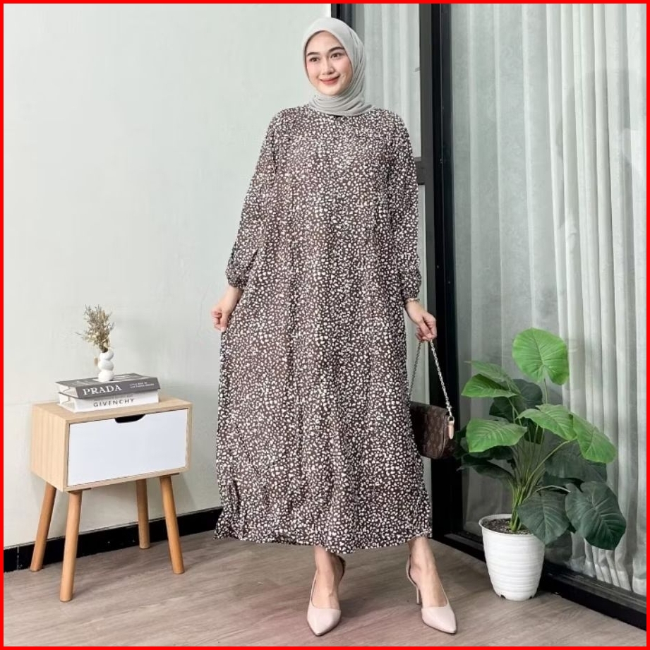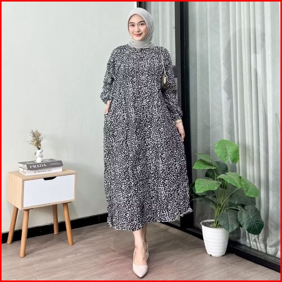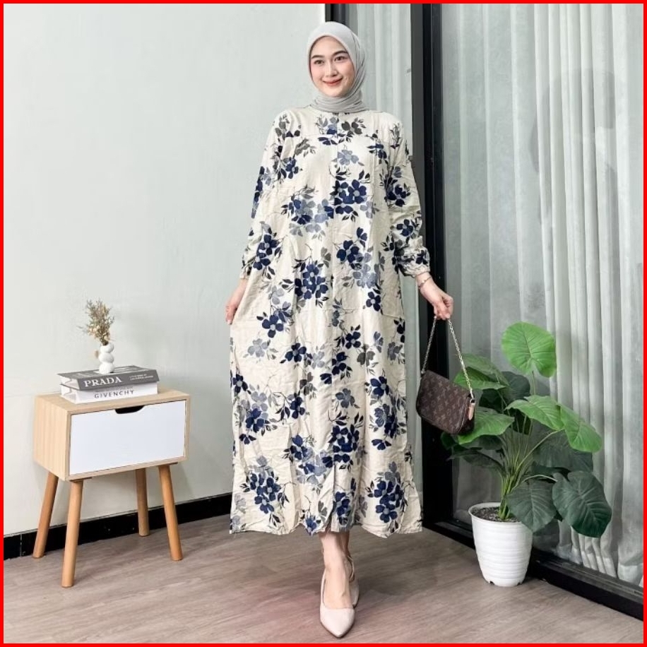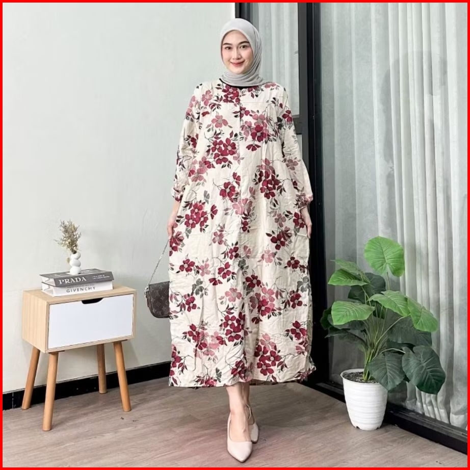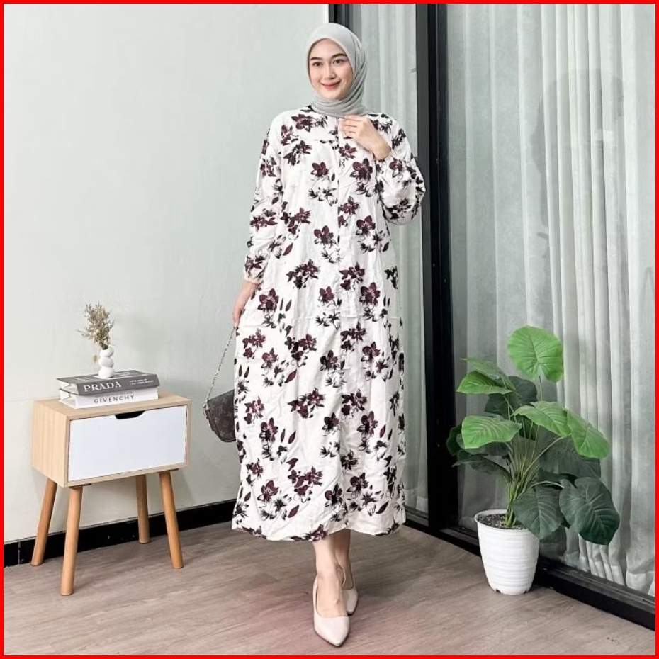 Daster Midi Dress Rayon Rempel Busui Lengan Panjang Kekinian
