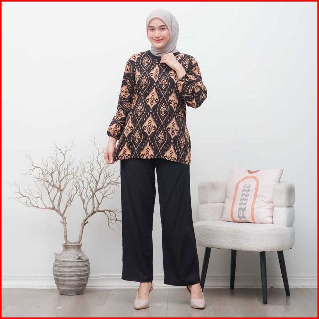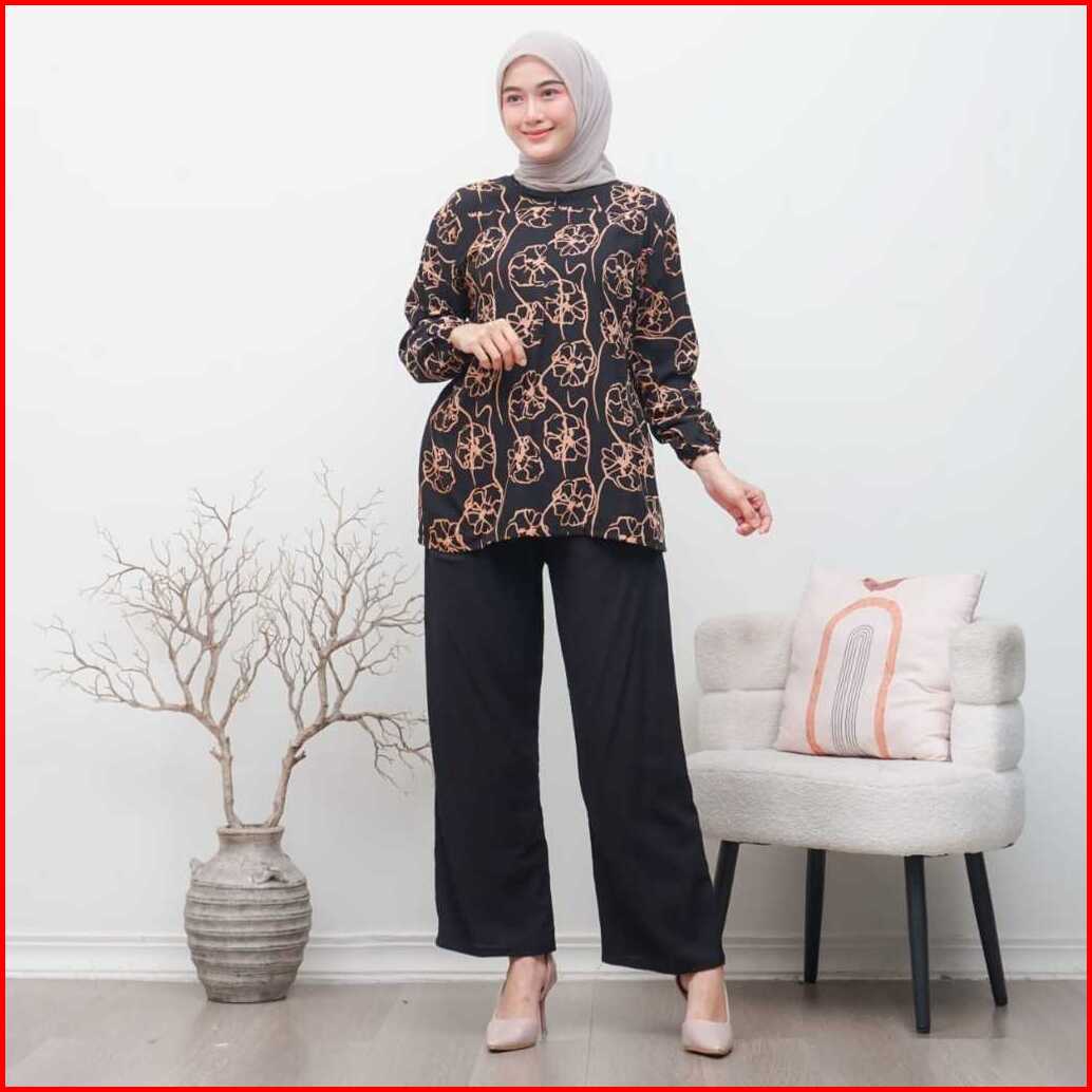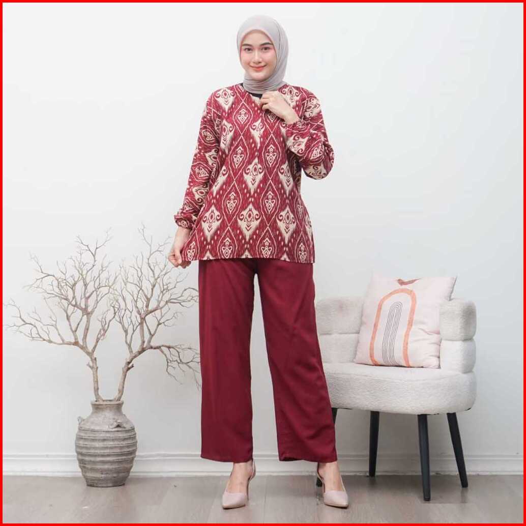 One Set Rayon Kekinian Motif Kejora Setelan Lengan 3 4