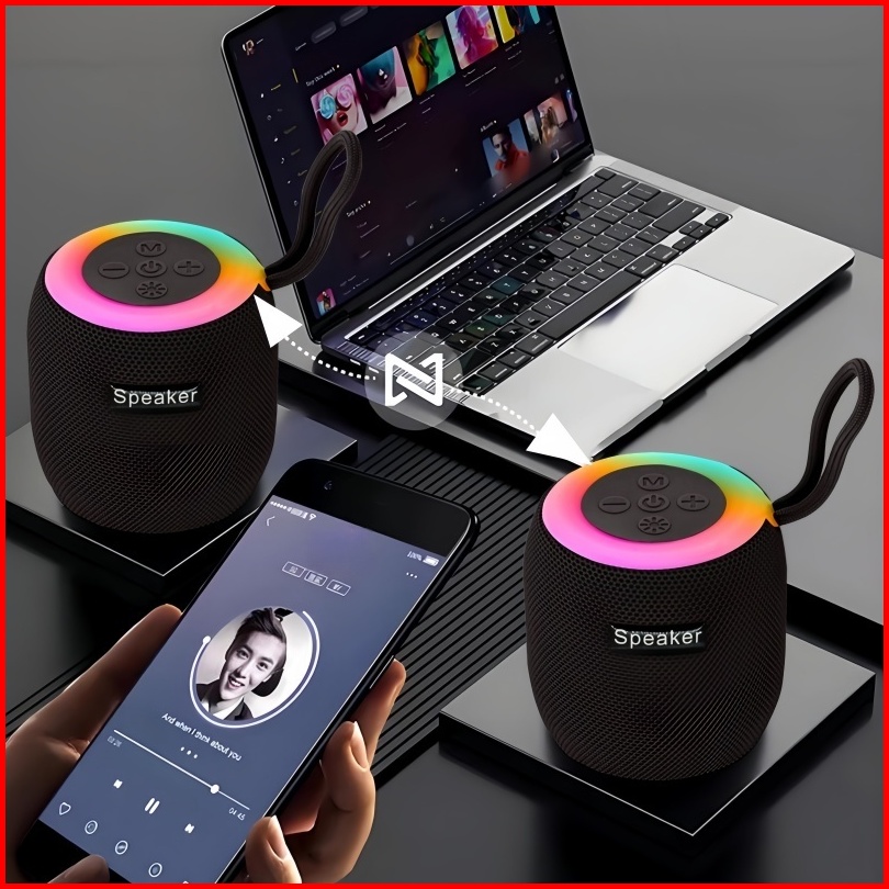 Speaker Bluetooth 5.0 Portable Tws Dengan Lampu Rgb Suara Bass Hifi Desain Ringkas Bisa Digantung Cocok Untuk Outdoor Tr