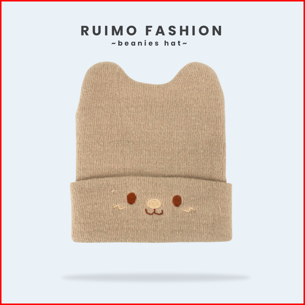 Ruimo Topi Beanie Rajut Elastis Bordir Korea Style Cocok Untuk Musim Dingin Z-17