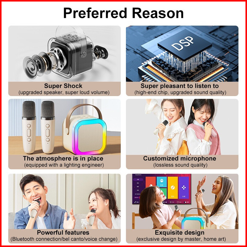 K22 Bluetooth Karaoke Speaker 2 Mics Mini Lightweight Full Bass Wireless For Friends Gathering