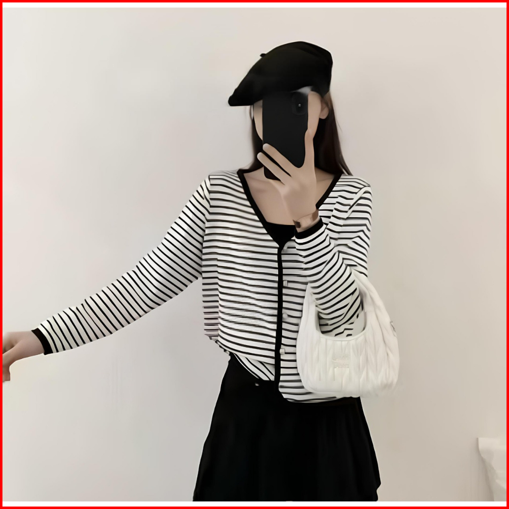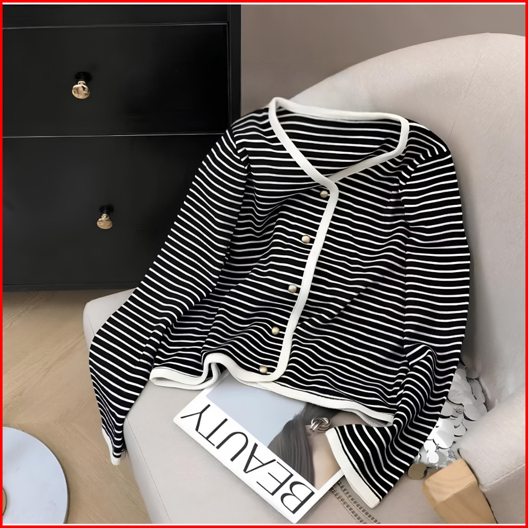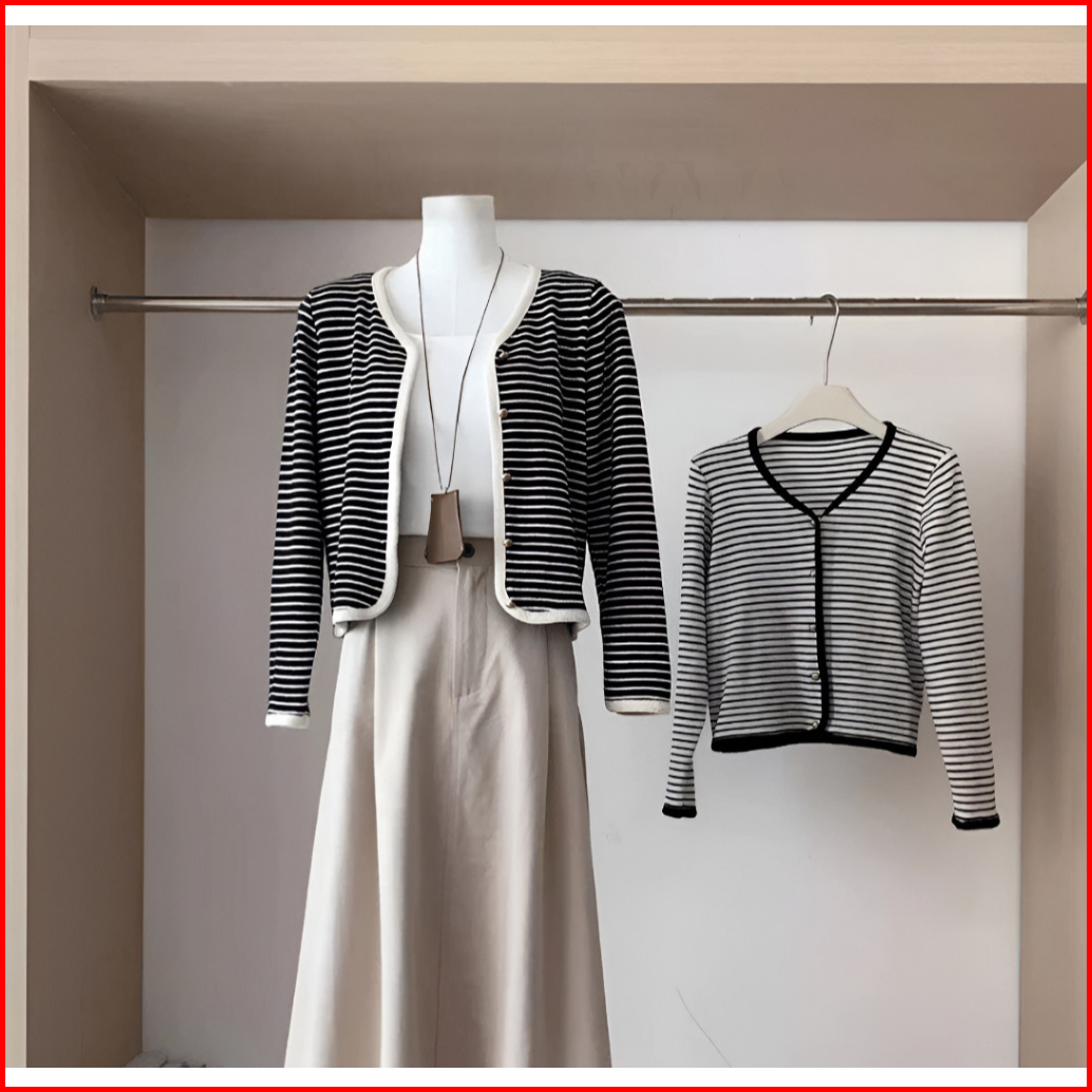 Cardigan Rajut Wol Stripe Salur Garis Simple Daily Basic Outfit Blouse Outer Santai Lembut