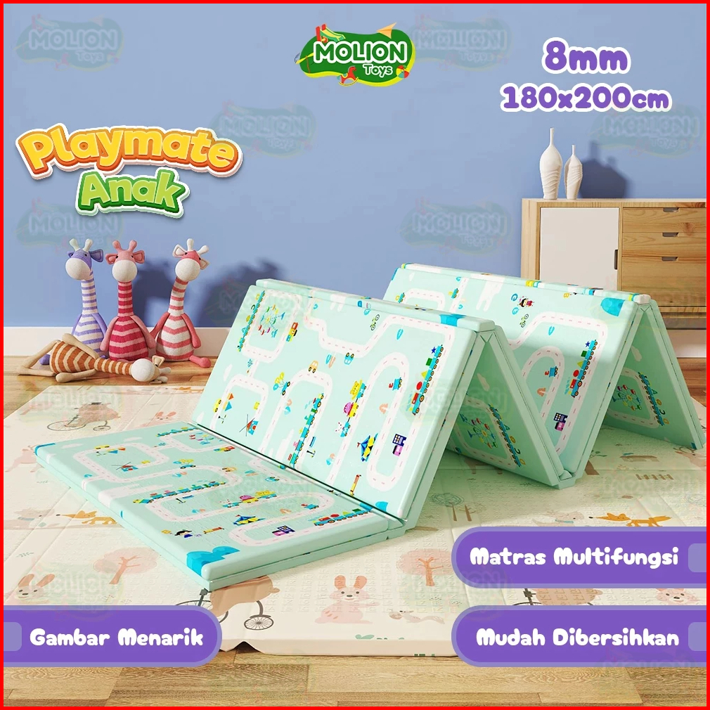 Playmat Bayi Lipat 180x200cm Karpet Main Anak Foam Tebal 8mm Anti Air Molion Toys