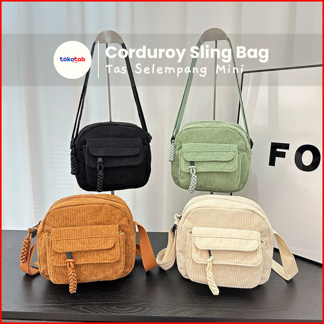 Tokotab - Tas Selempang Corduroy Slingbag Corduroy Tas Bahu Wanita Pria Tas Slempang Korea Classic Corduroy Pouch