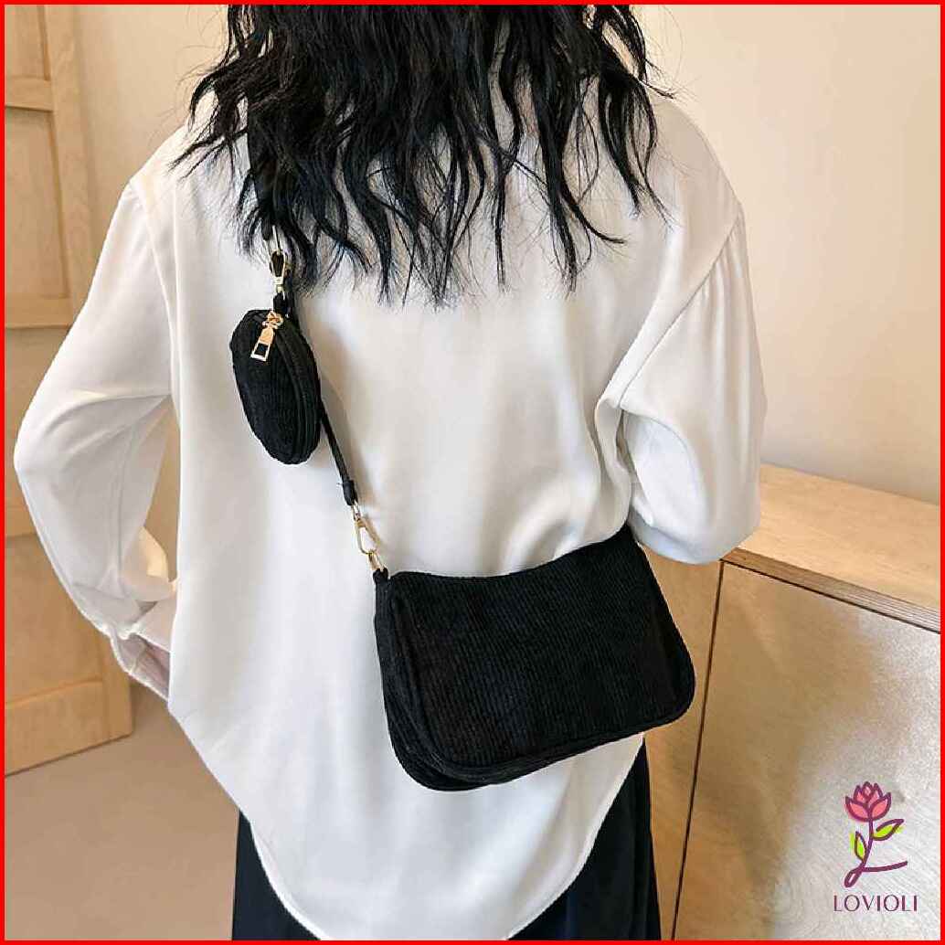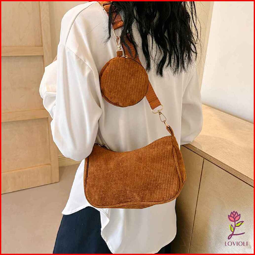 Lovioli Jiwon Bag Tas Sling Bag Wanita Corduroy Stylish Casual Premium Selempang Perempuan Korea