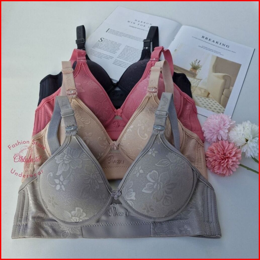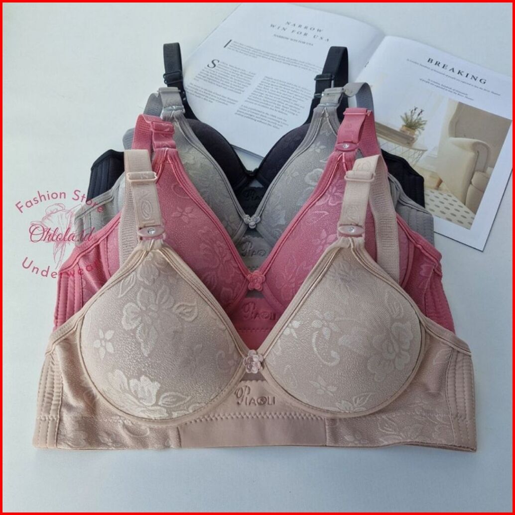 3 Pcs Bra Wanita Piaoli Bh Katun Bunga Lembut Dapat Celana Dalam
