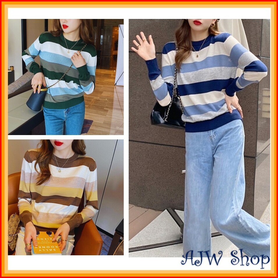 Ajw Atasan Oversize Wanita Salur Rajut Import Xbg Atasan Rajut Oversize Garis Garis Oversize Wanita Atasan Korean Style