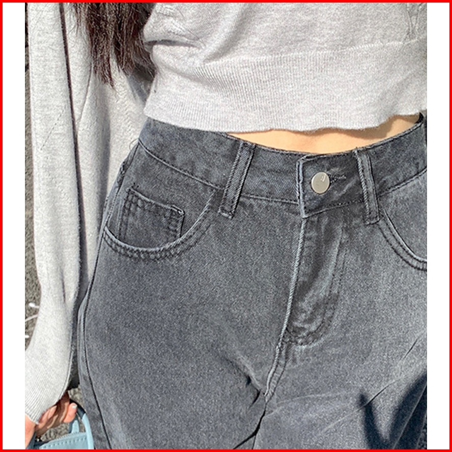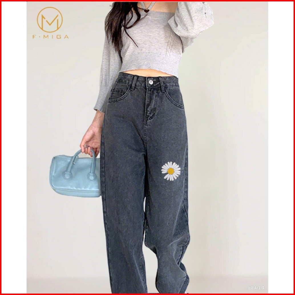 F Miga Co17 Celana Jeans Kulot Motif Bordir Bungan Model Boyfrend Jeans Korean Style