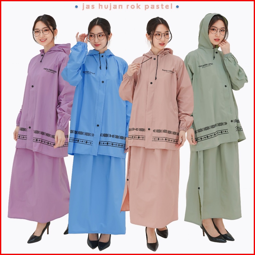 Jas Hujan Rok Mantel Hujan Wanita Setelan Baju Dan Rok Warna Pastel