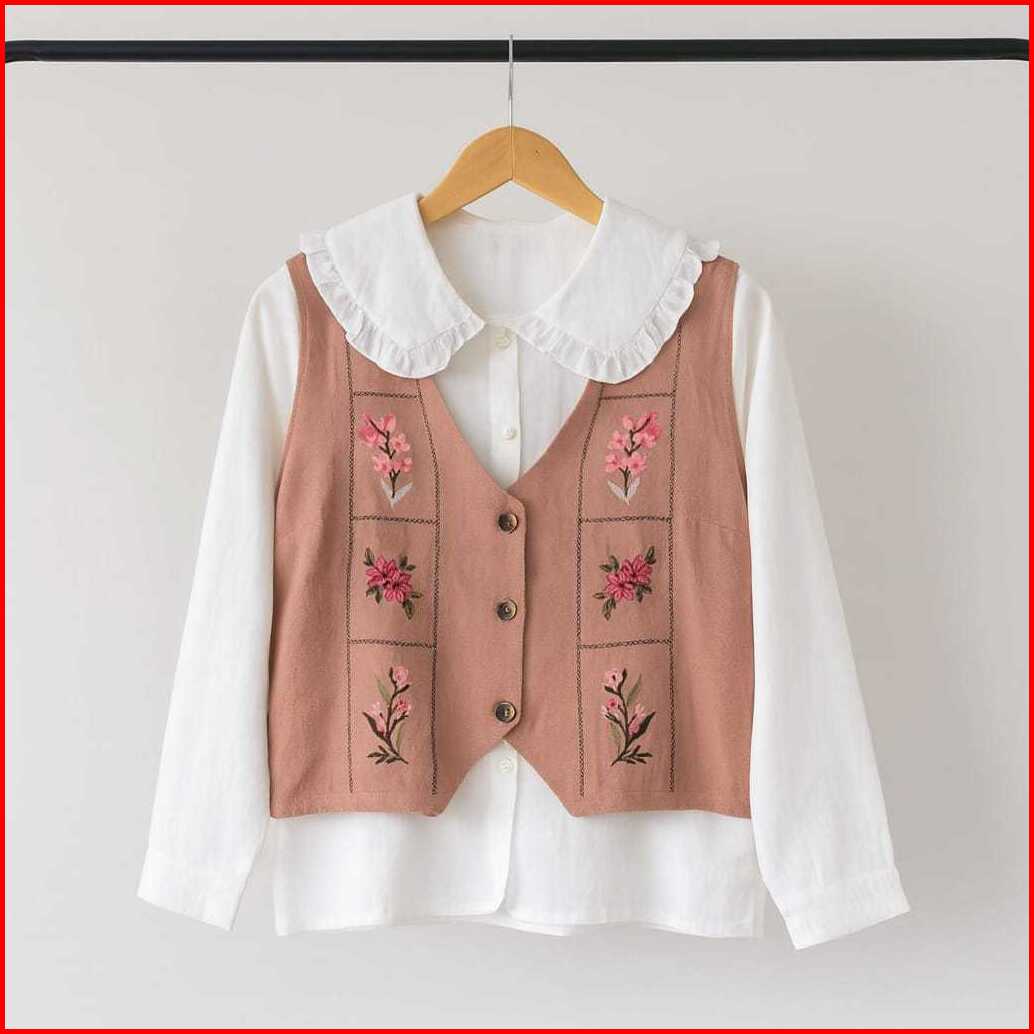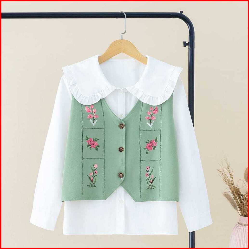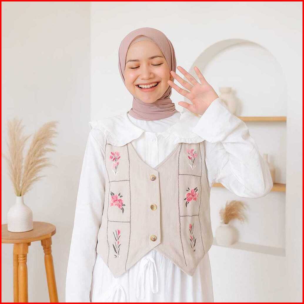 Naluna Studio Floral Blouse Top Muslim Wanita 2 Layer Atasan Linen Lengan Panjang