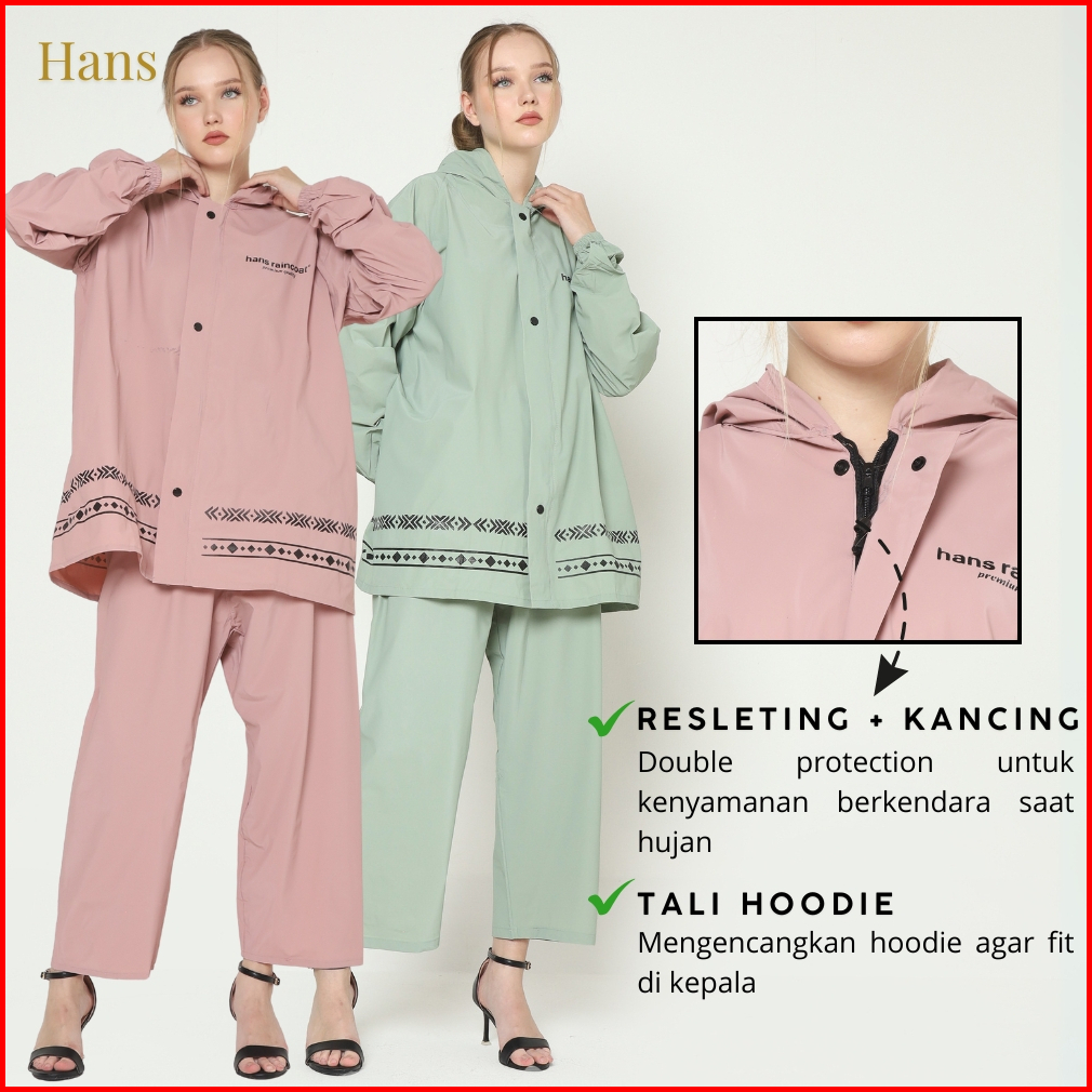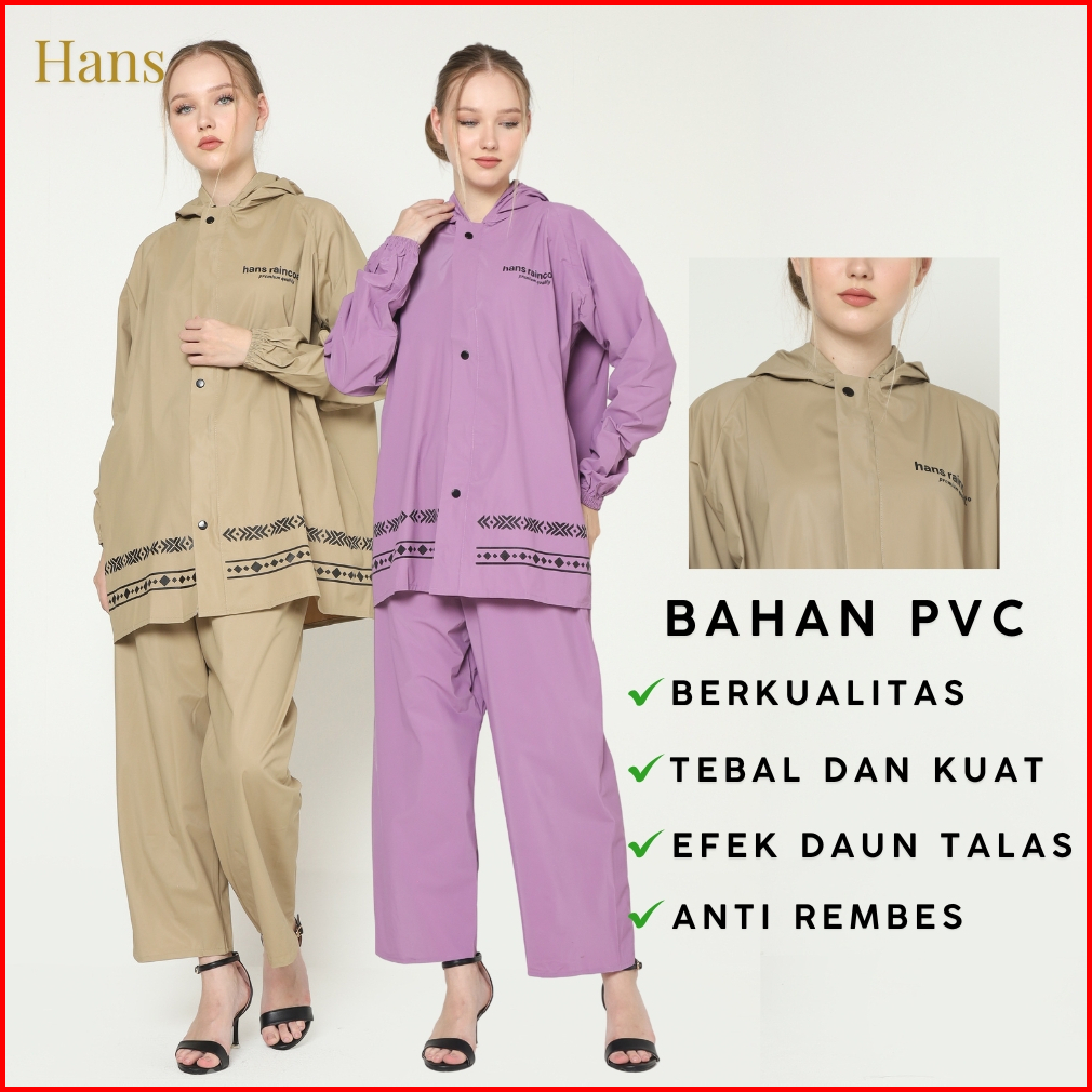 Hans Jas Hujan Wanita Dewasa Setelan Baju Dan Celana Warna Pastel