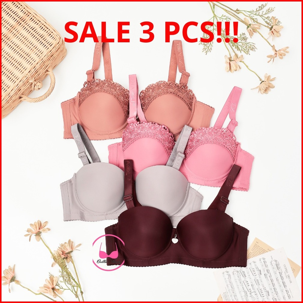 3 Pcs Bra Piaoli Cup B Sedang Half Cup Seamles Bellewear Renda Pl8814