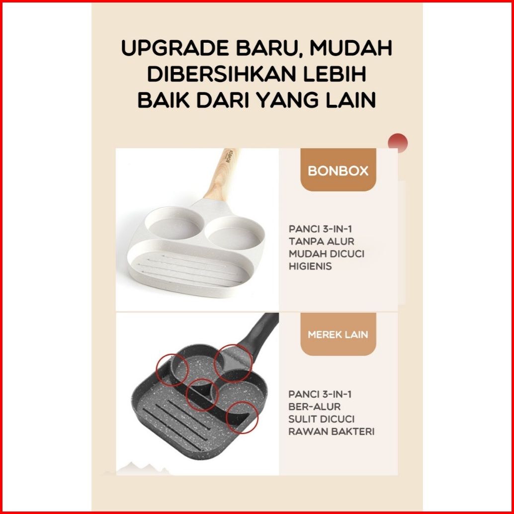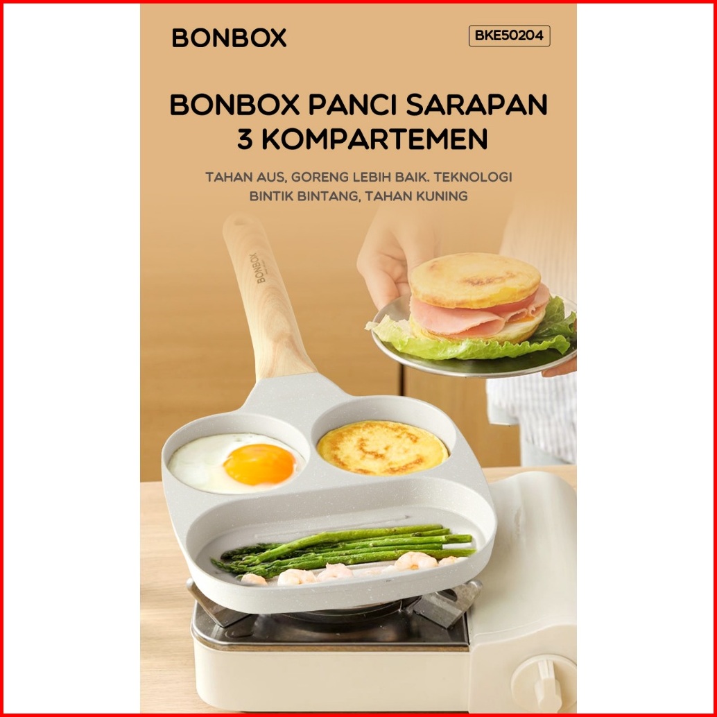 Wajan Pagi Bonbox 3 Lubang 19x19cm - Panci Sarapan Anti Lengket Lapisan Pfoa-free Sertifikat Jerman Pemanasan Cepat 40 K
