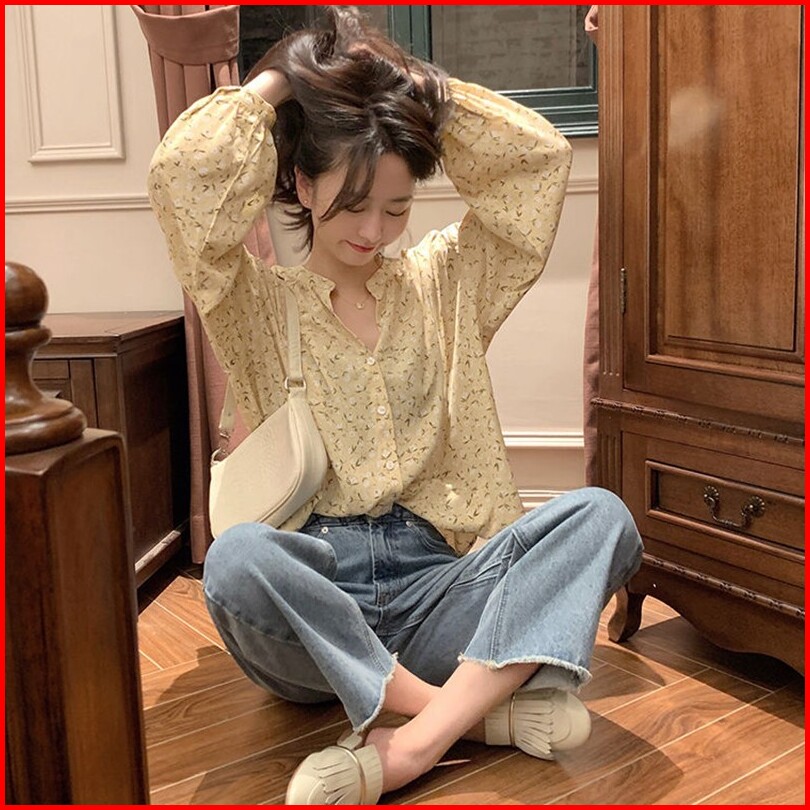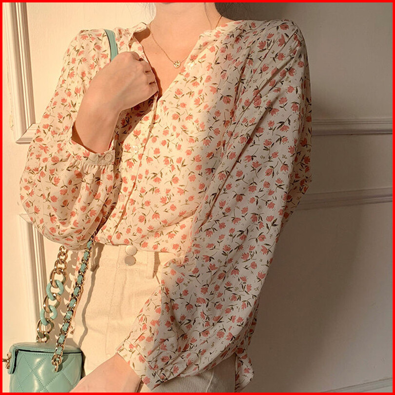 Air Swimwear Xf002 Blouse Bunga Kemeja Sifon Prancis Blouse Kemeja Bunga Wanita