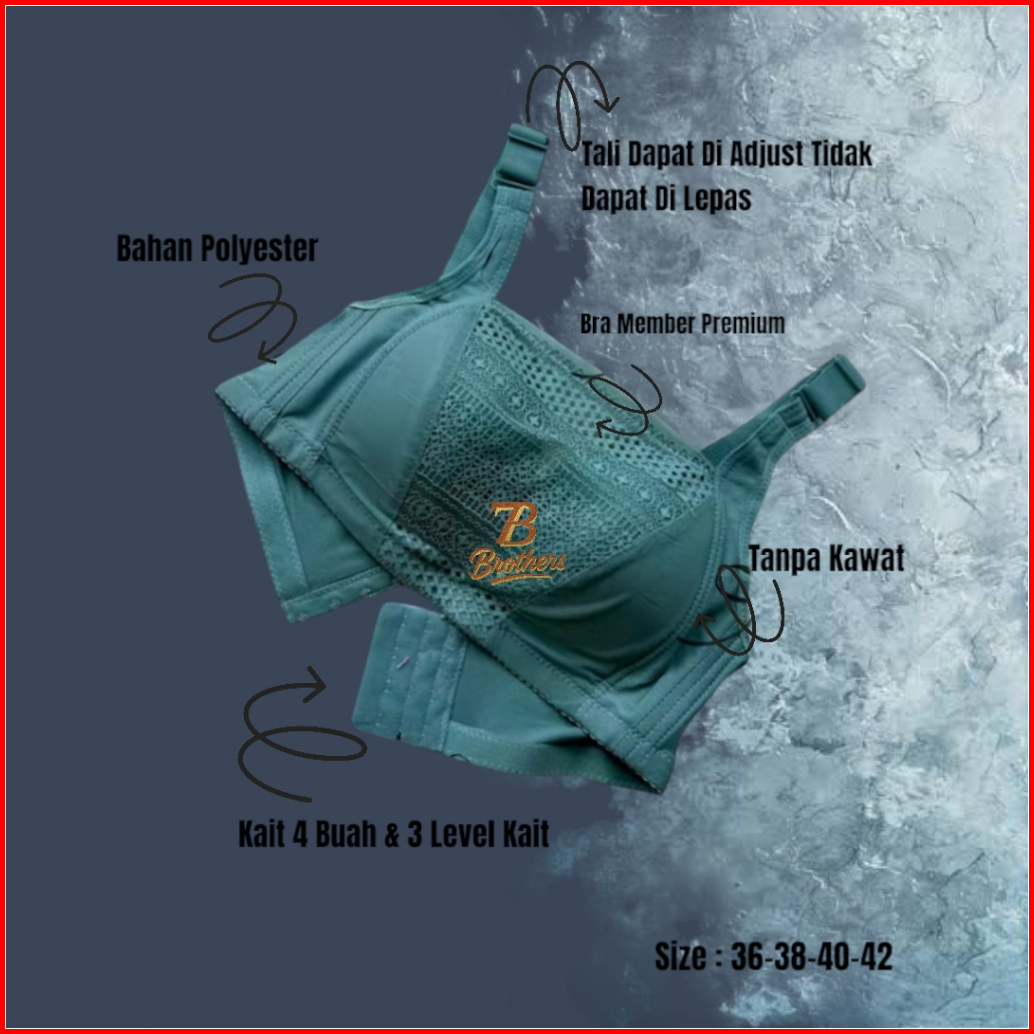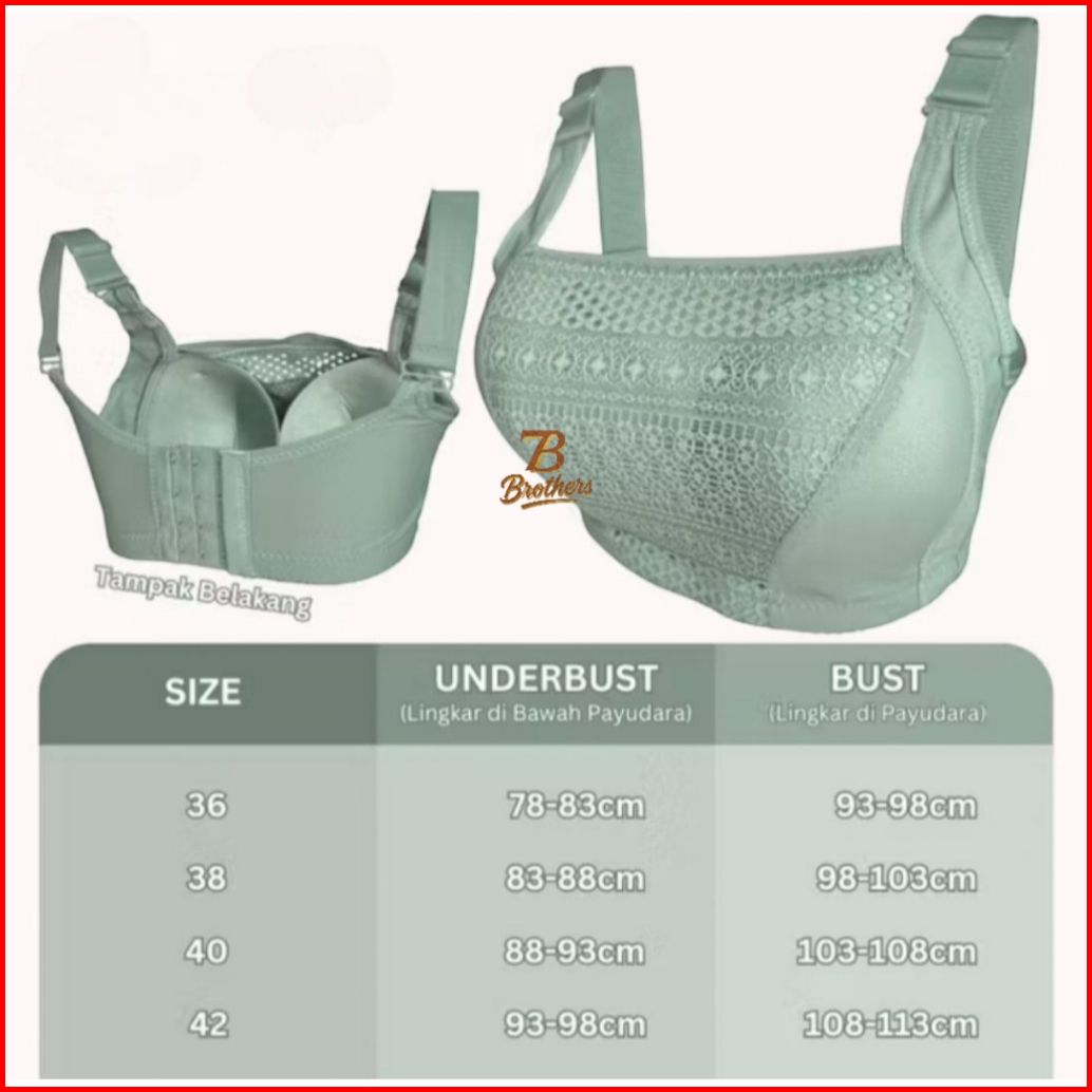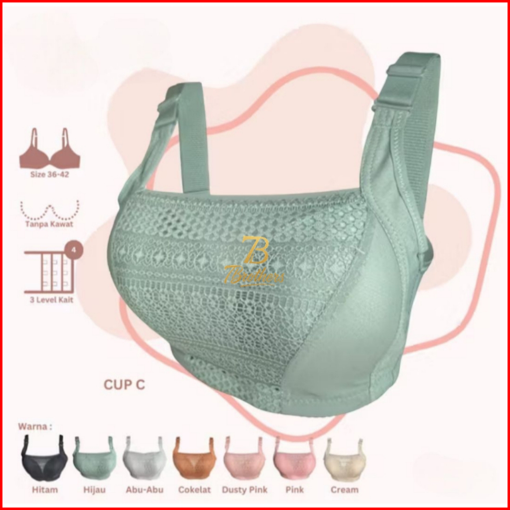 3 Pcs Bra Kemben Bra Kemben Import Tanpa Kawat Cup Jumbo Kait 4 Size 36-38-40-42