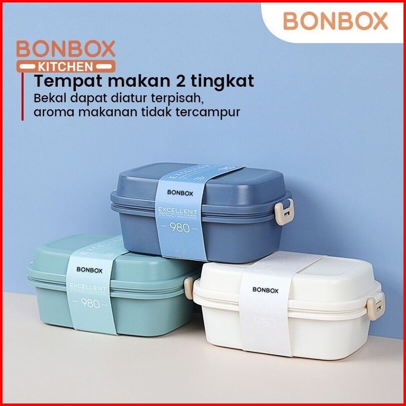 Bonbox Kitchen Kotak Makan Anak Kotak Makan 2 Tingkat Lunch Box Susun Microwaveable Food Grade Material Plastik Dengan A