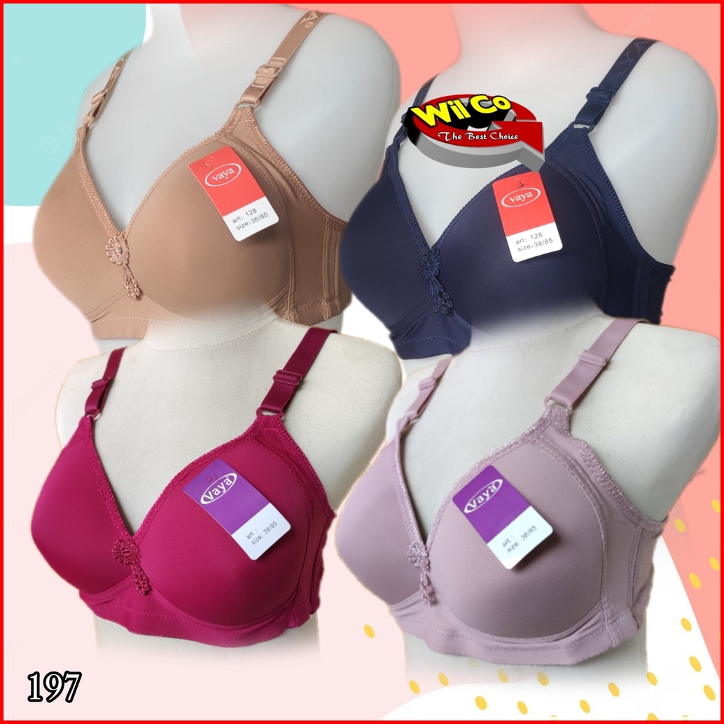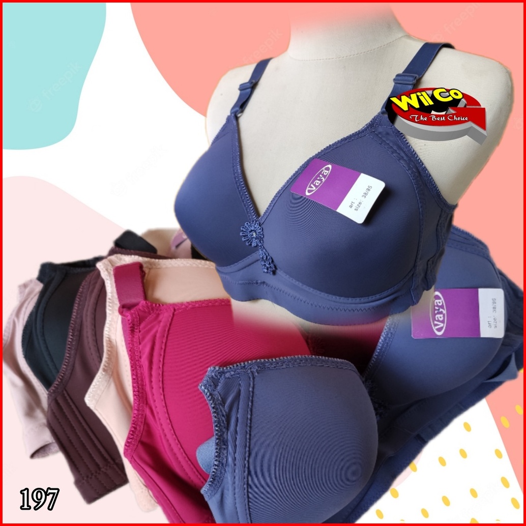 K197 1-3 Pcs Vaya Bra Busa Tanpa Kawat Cup C Size 36c - 46c Tiga Pengait