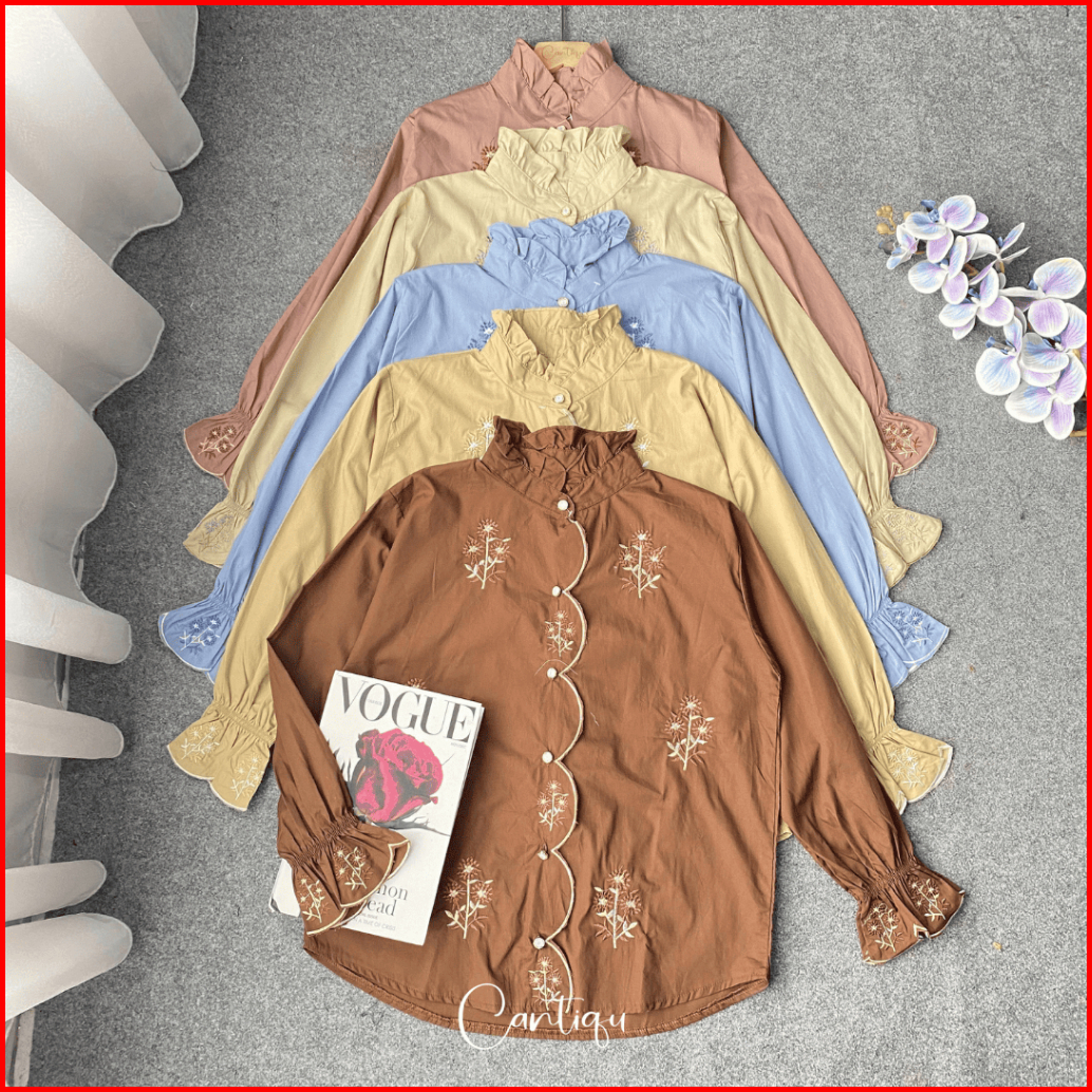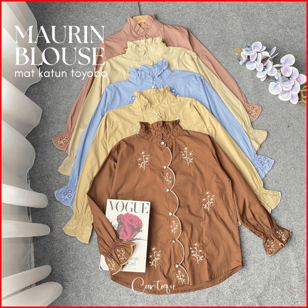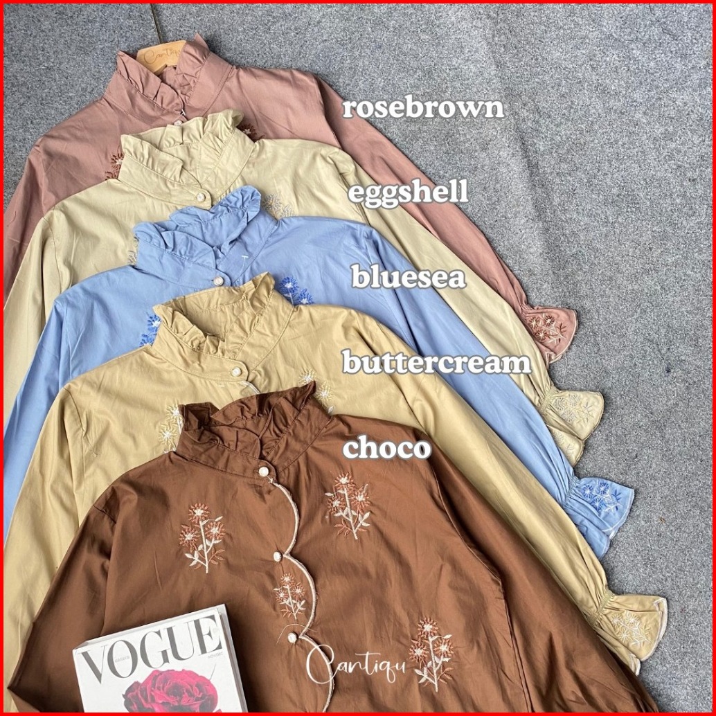 Cantiqu - Maurin Blouse Bordir Atasan Wanita Ruffle Lengan Panjang Bahan Toyobo