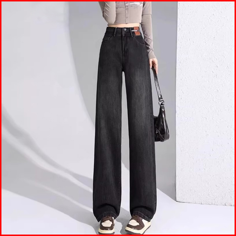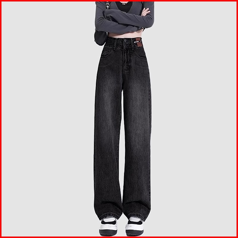 Boll.id Abu Celana Jeans Wanita Jeans High Waist Jumbo Baggy Pants Casual Celana Korean Style Celana Panjang Wanita Keki