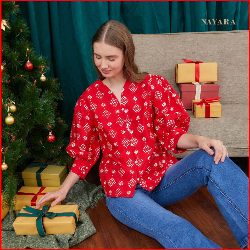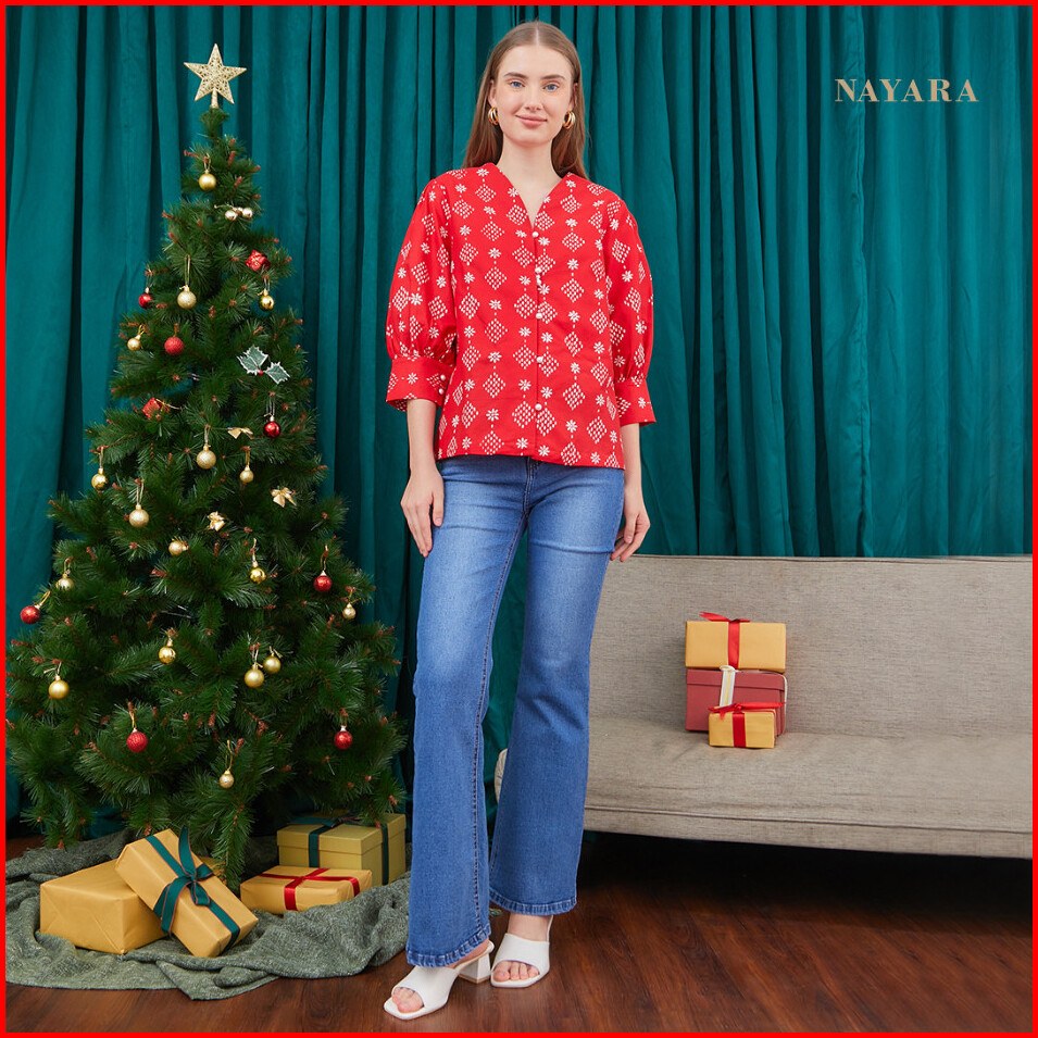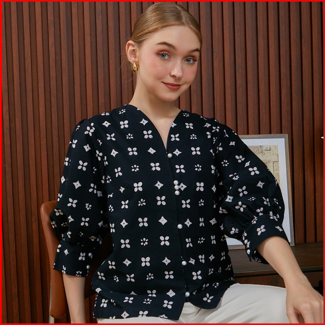 Nayara Annika Blouse Batik Katun Kerah V Neck Fashion Wanita