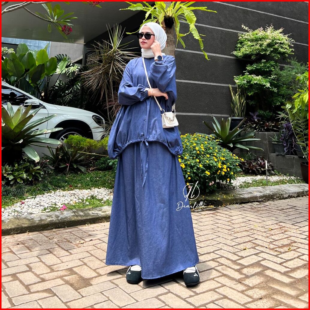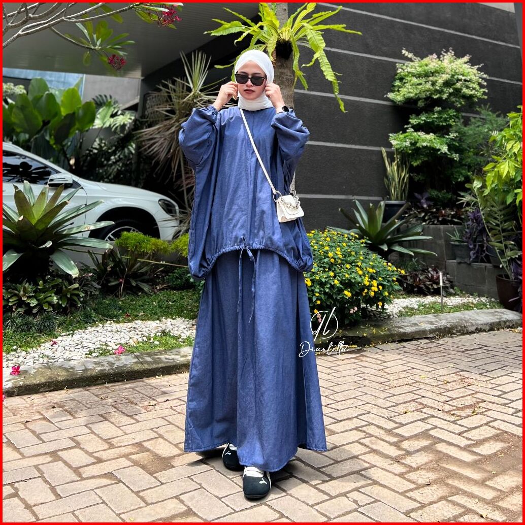 Willow Set Rok 2in1 Semi Batwing Balloon Busui Friendly Soft Jeans Rok A-line Umbrella By Diarletta
