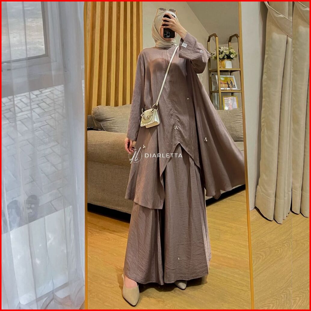 Berlianna Set Rok Permata Payet Polo Linen Busui Friendly Rok Umbrella By Diarletta