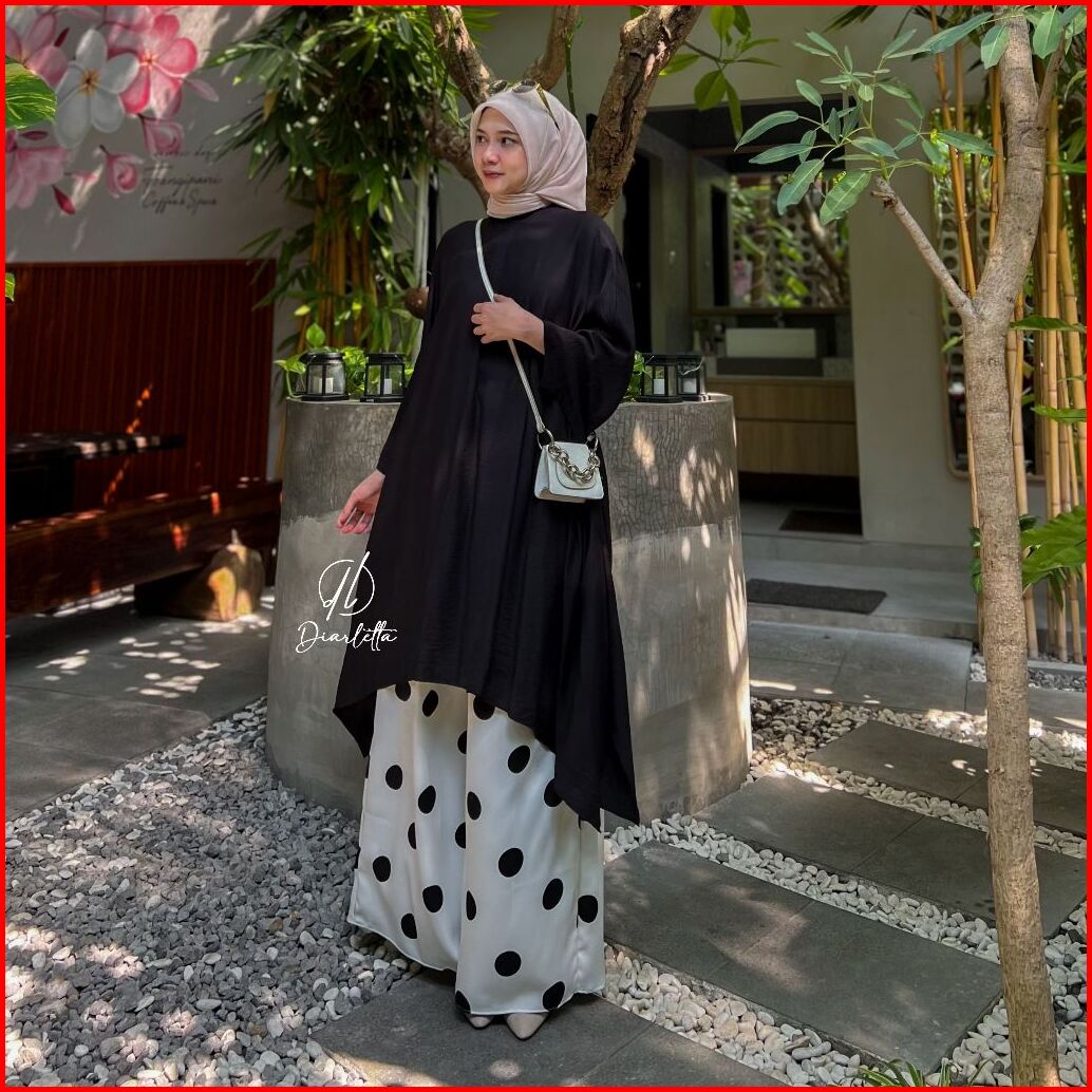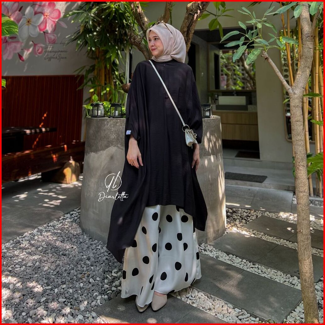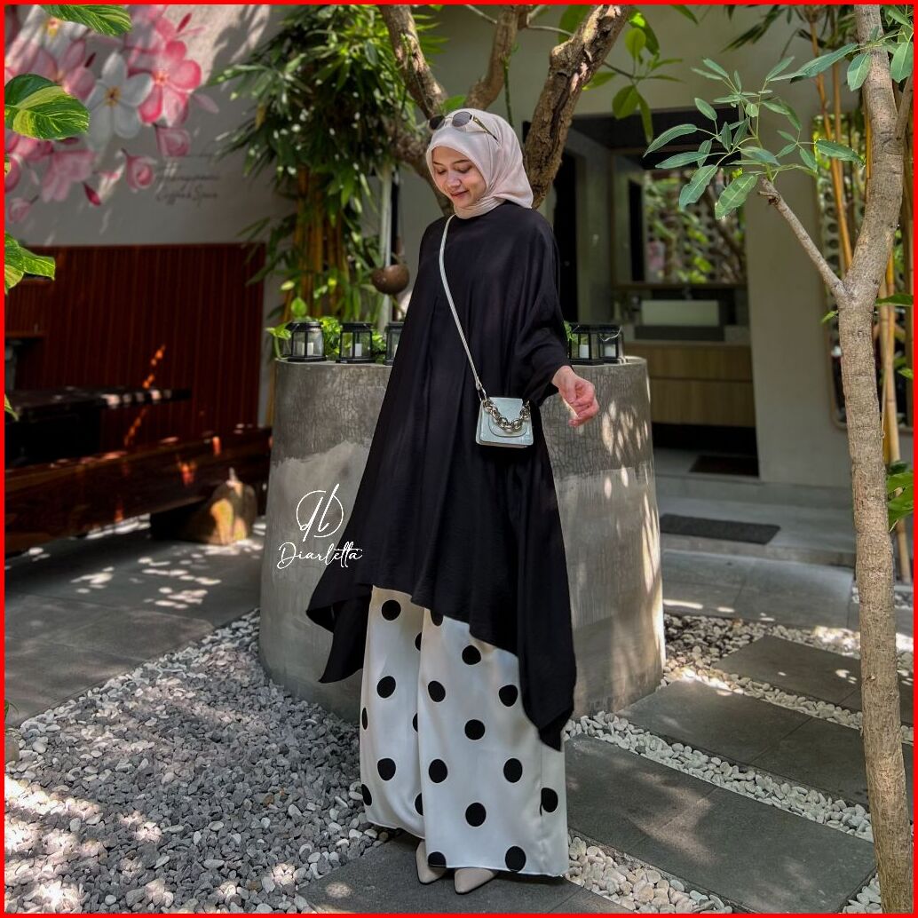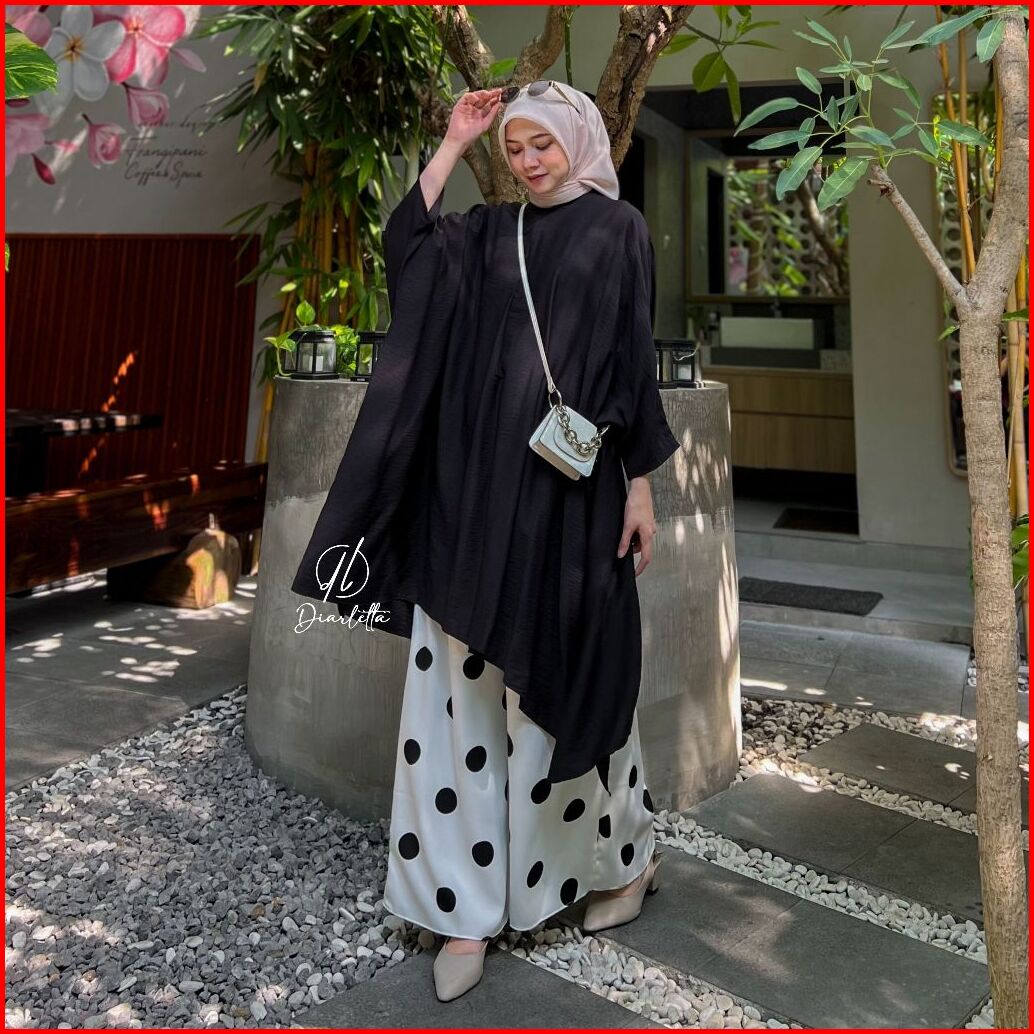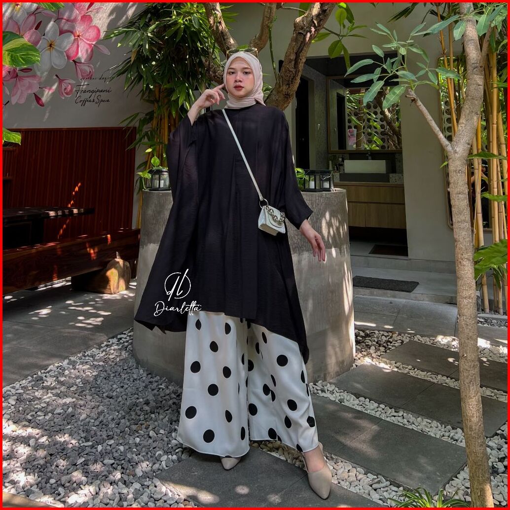 Oryn Set Kulot Polkadot Tunik Batwing Busui Frendly Polo Linen Shakila Oneset Daily By Diarletta