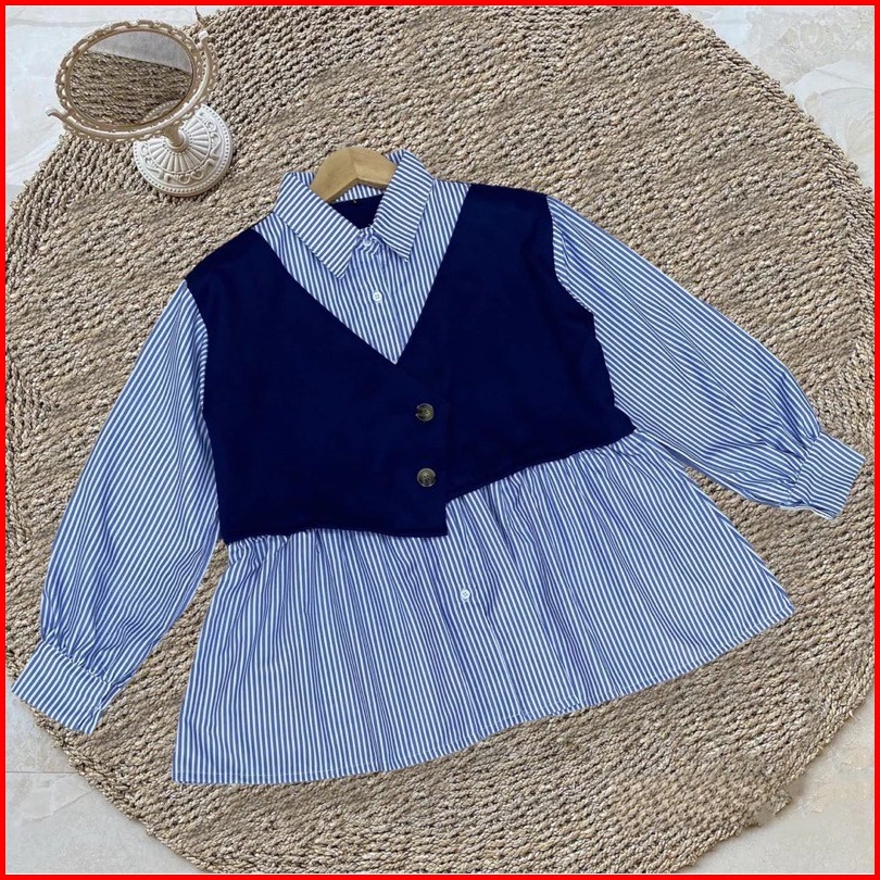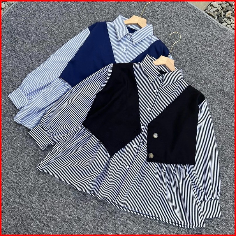 Kameja Blouse Crinkle Mix Salur Katun Model Remaja Terbaru Termurah Terkini 2025 Baju Panjang