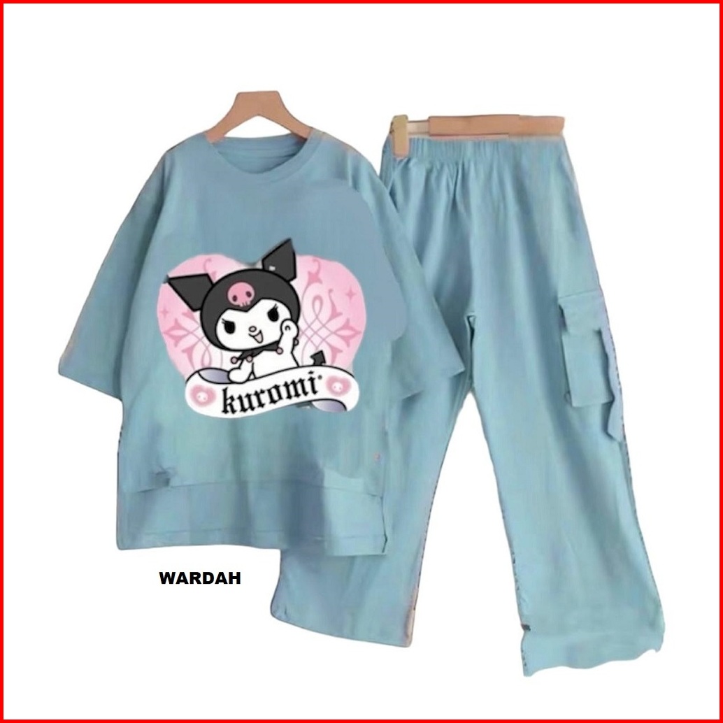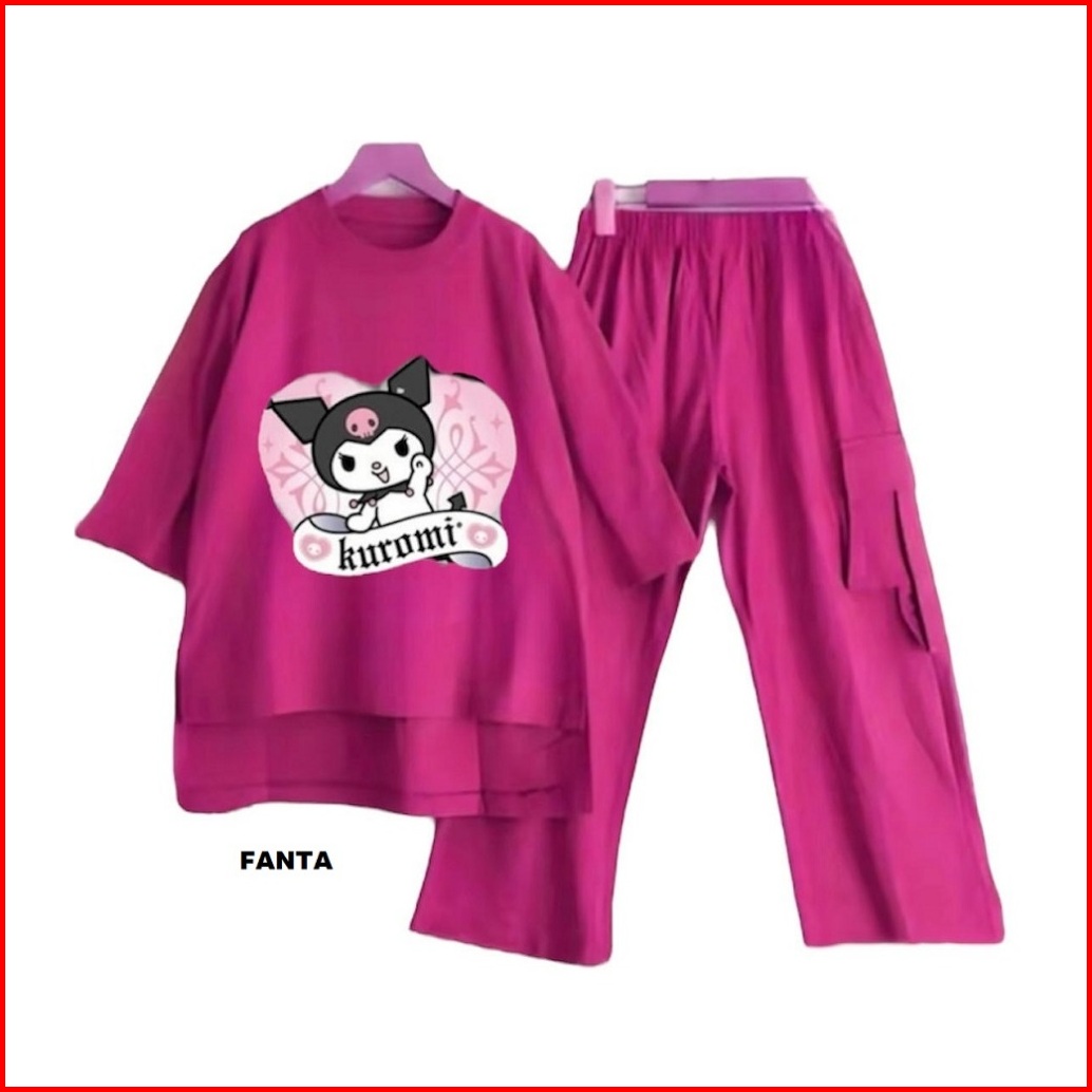 Setelan Anak Prempuan 3-12 Thn Terbaru Terlaris 2024-set Kuromi Forger Crinckle Airflow Premium.termurah.
