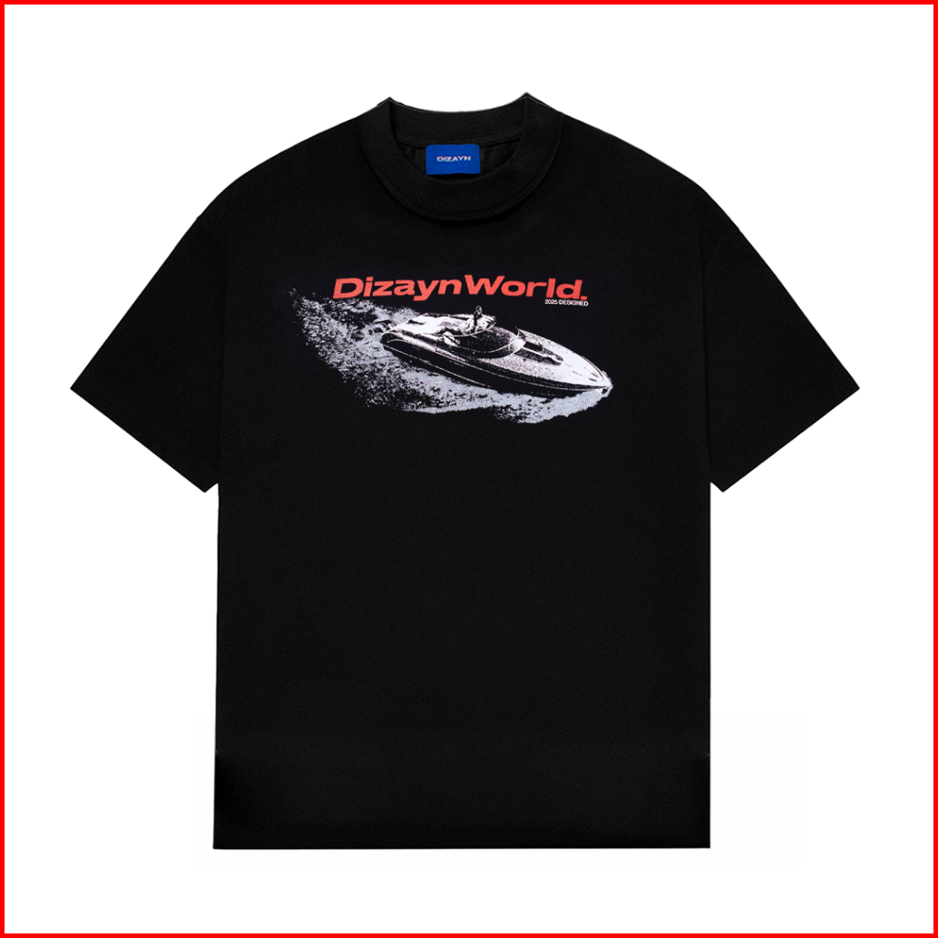 Dizayn - Ocean Drift Black Heavyweight Reguler Tshirt 16s Cotton