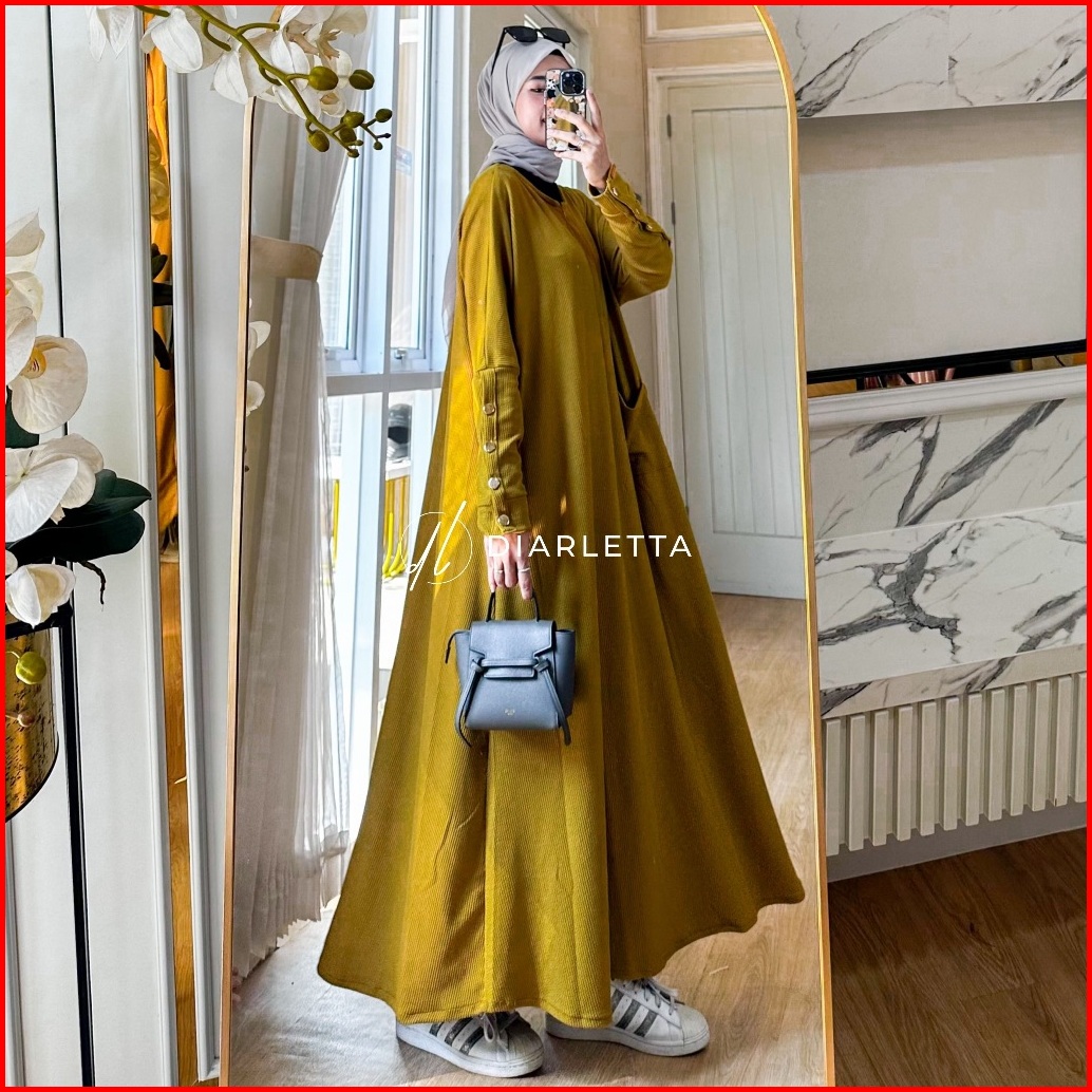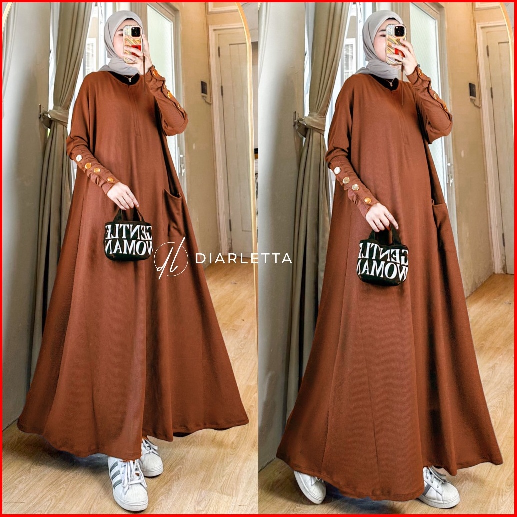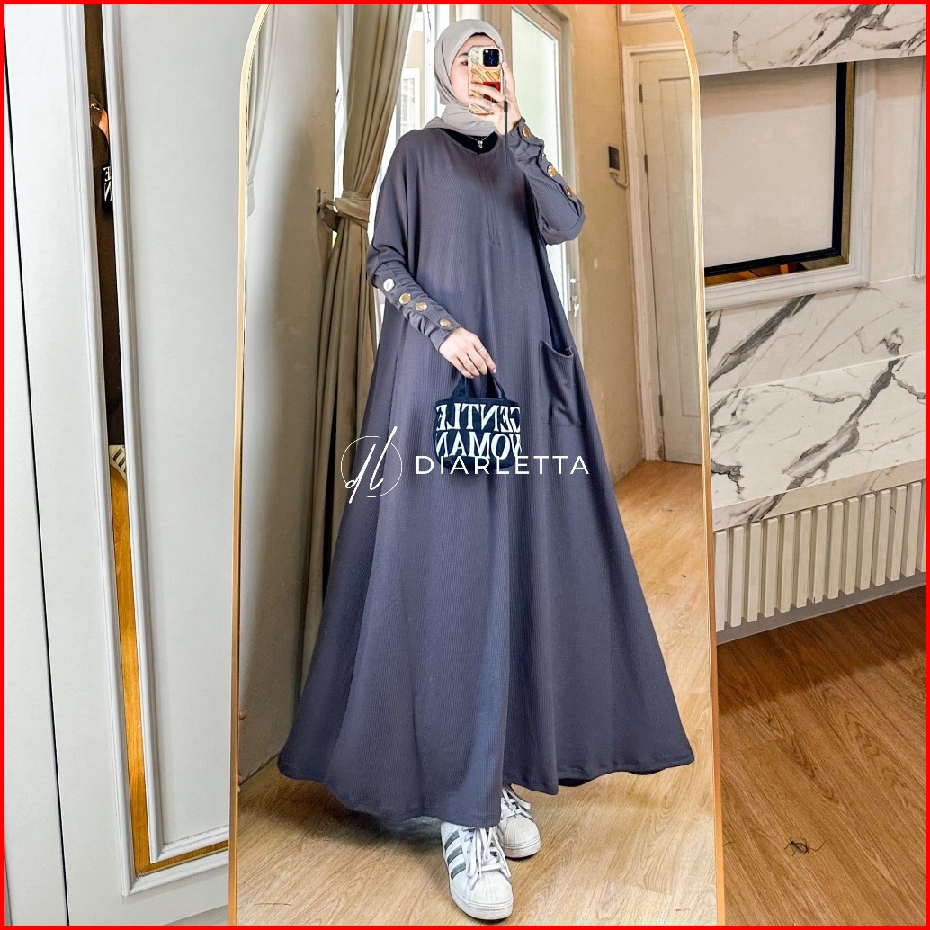Zoya Abaya Batwing Button Knit Rib Premium Gamis Batwing By Diarletta