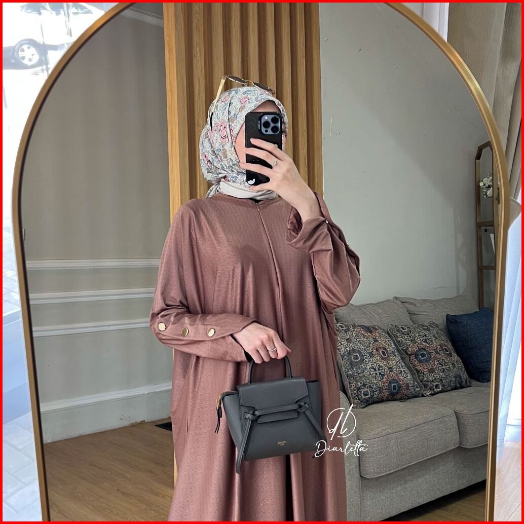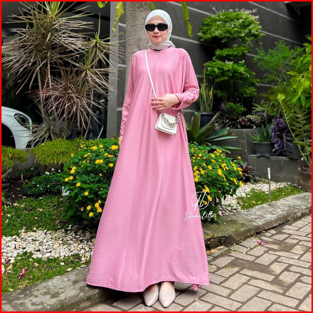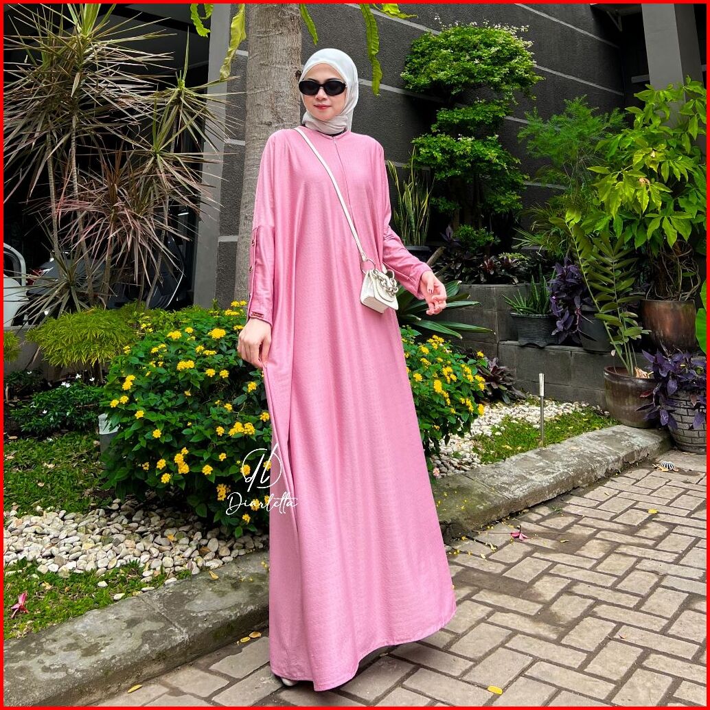 Saba Plain Dress Semi Batwing Lengan Kancing Kaos Pentagon Gamis Busui By Diarletta