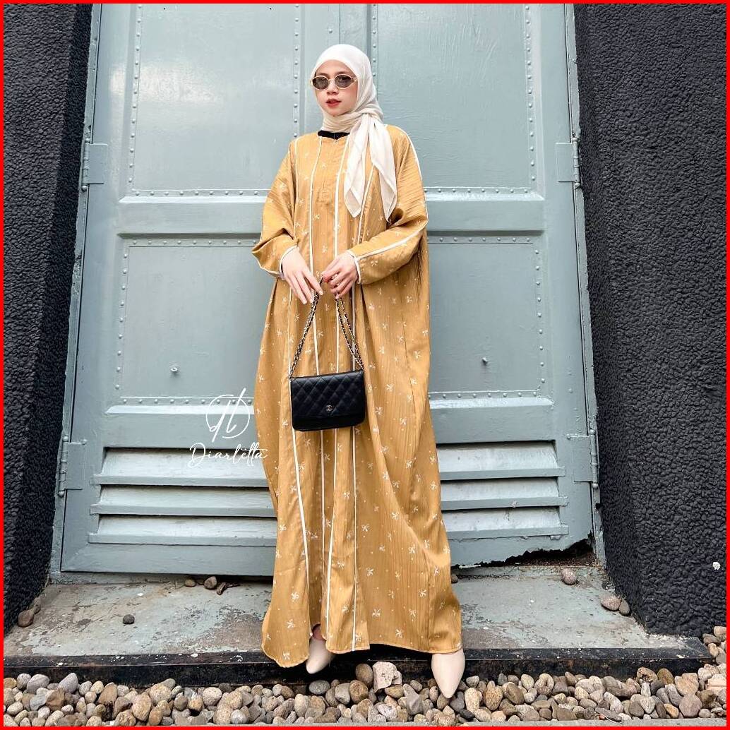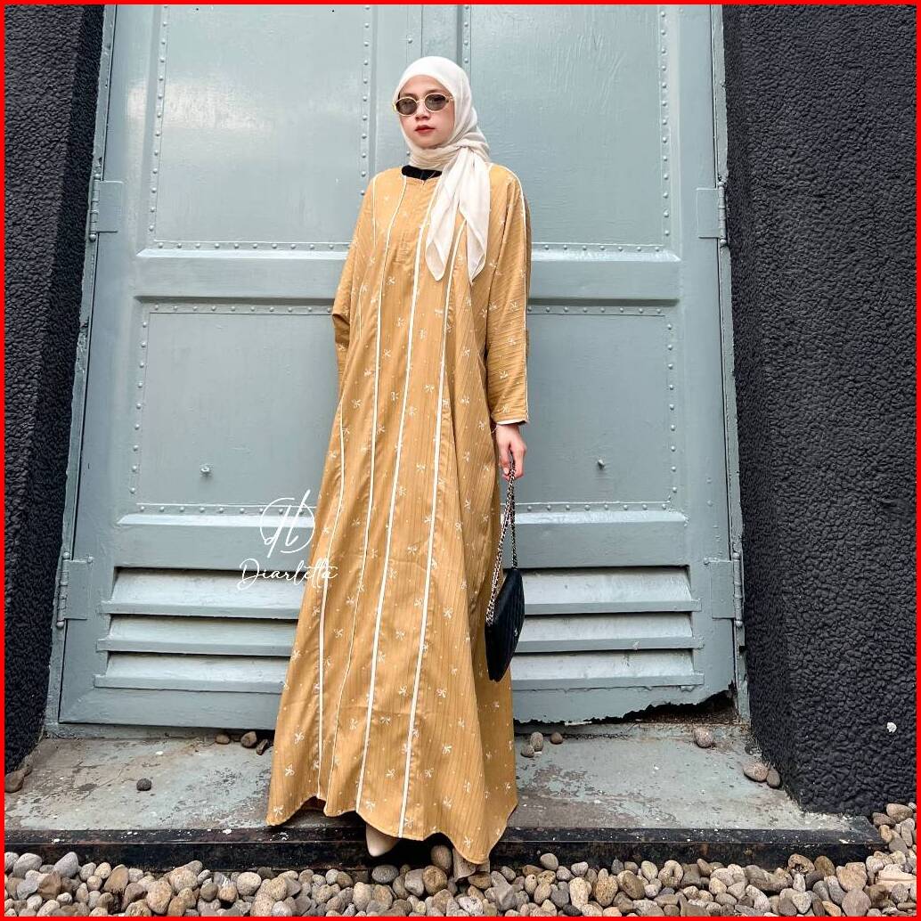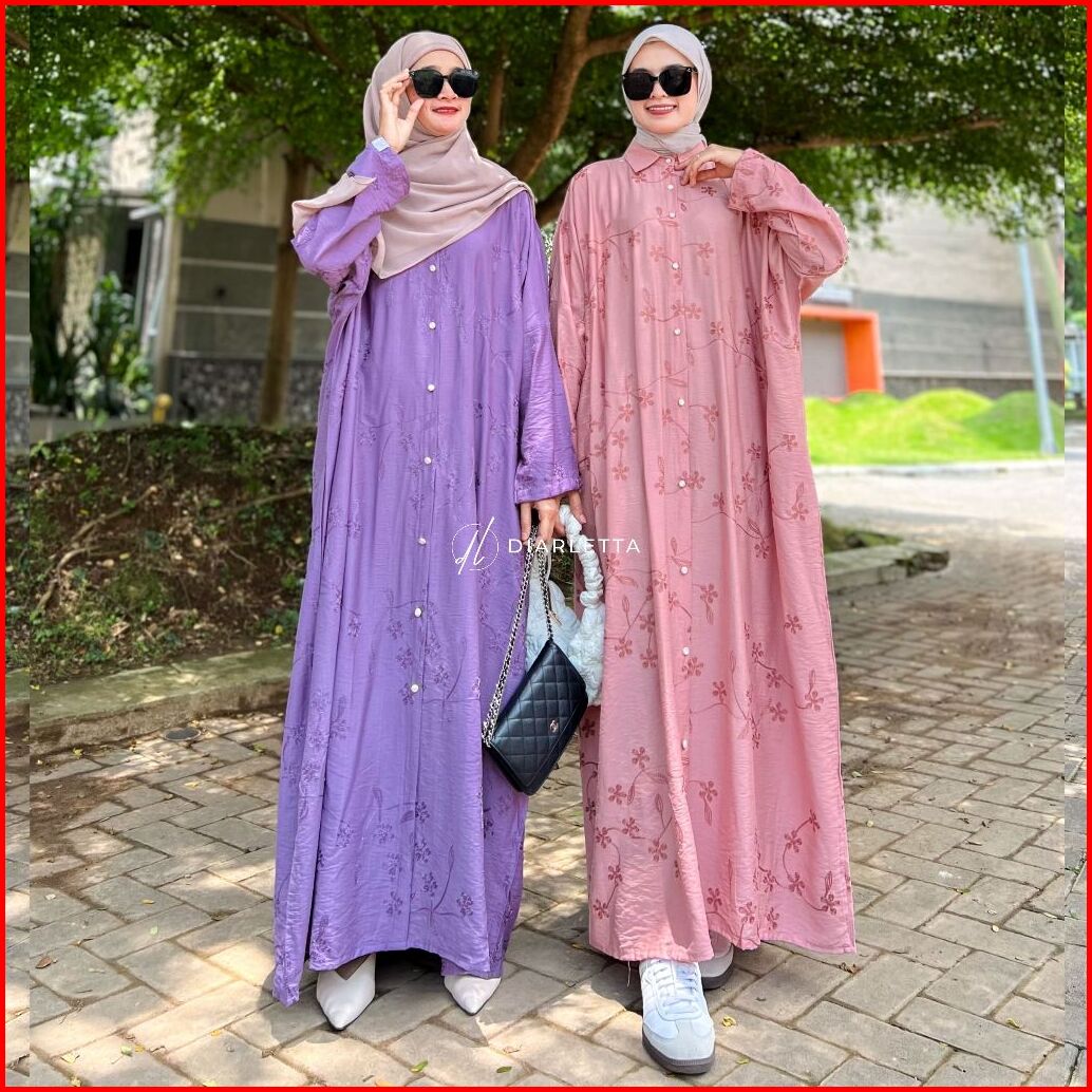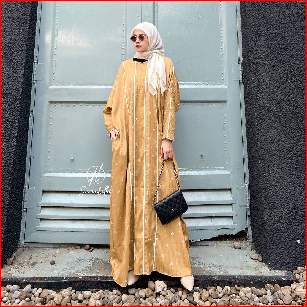 Raya Series Jeeda Emborderry Abaya Dress Batwing Busui Friendly Polo Linen Embordery By Diarletta