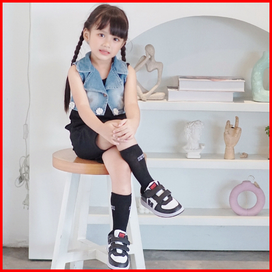 Hikekicks Haf Black White - Sepatu Sneakers Anak Sekolah Laki Laki Perempuan Fashion Anak Formal