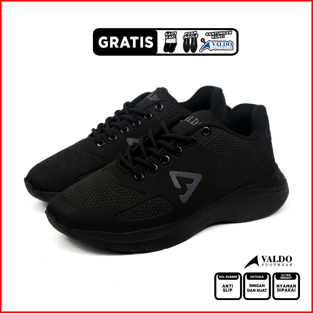 Valdo Footwear 31-43 Victor Sepatu Anak Laki Laki Dan Pria Dewasa Hitam Logo Putih Vr002