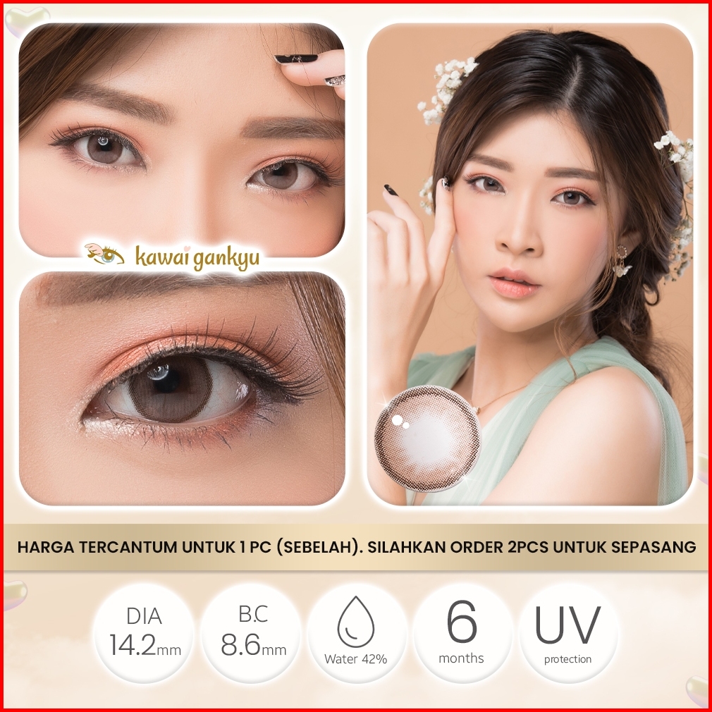 Kawai Gankyu Softlens New Puffy Dulcis Lilia Brown 1pcs Setengah Pasang