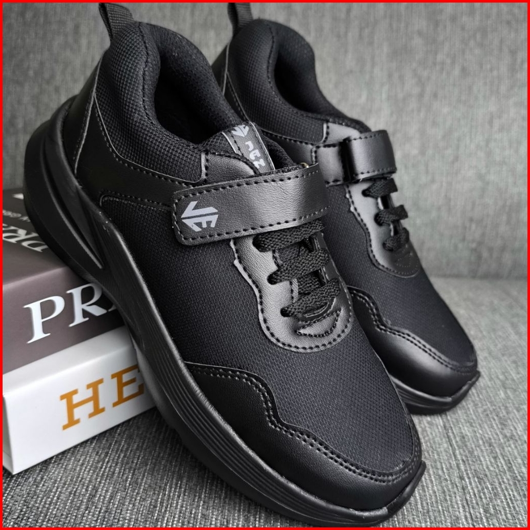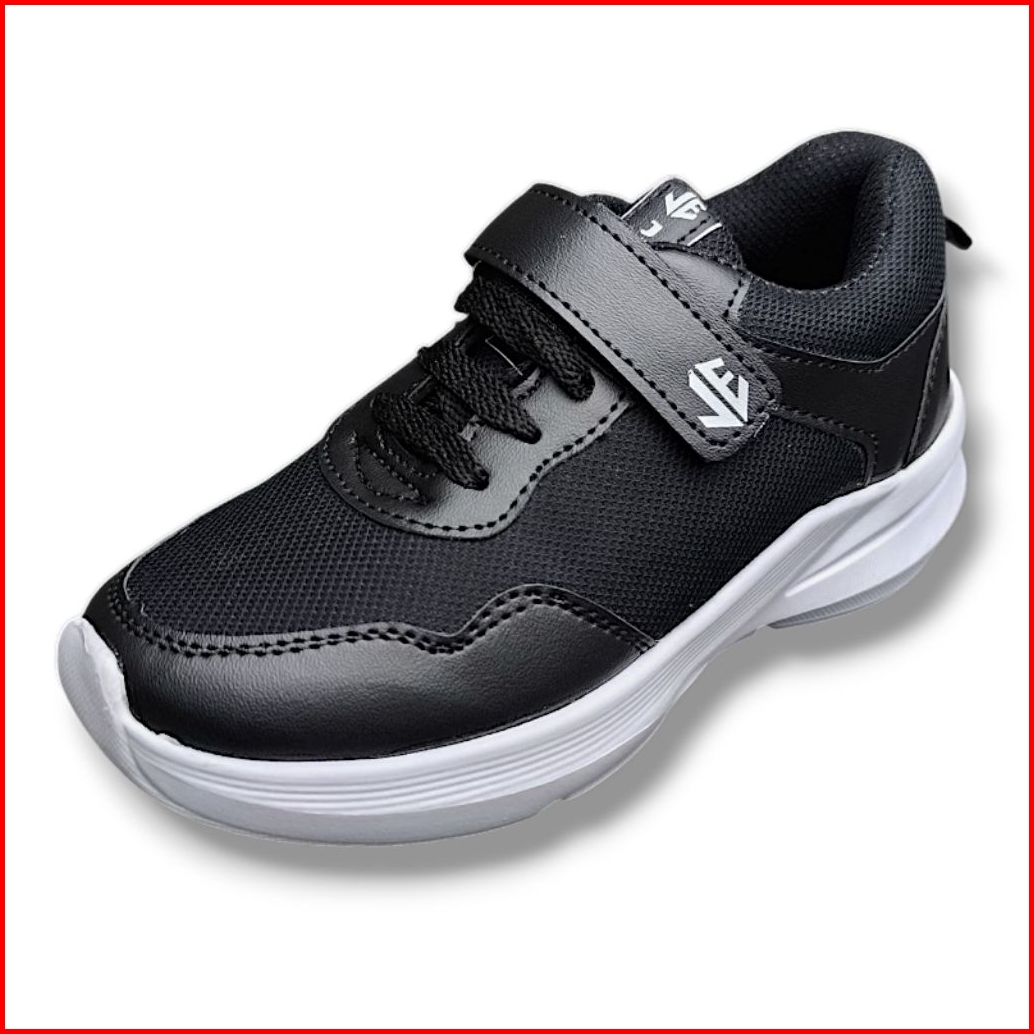 Jan Ernst Sepatu Sekolah Anak Tali Velcro Hitam Putih Size 31-35