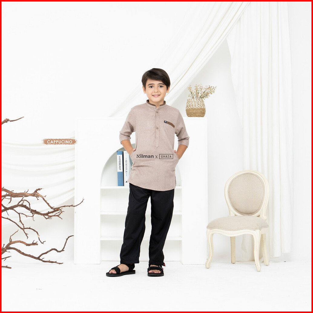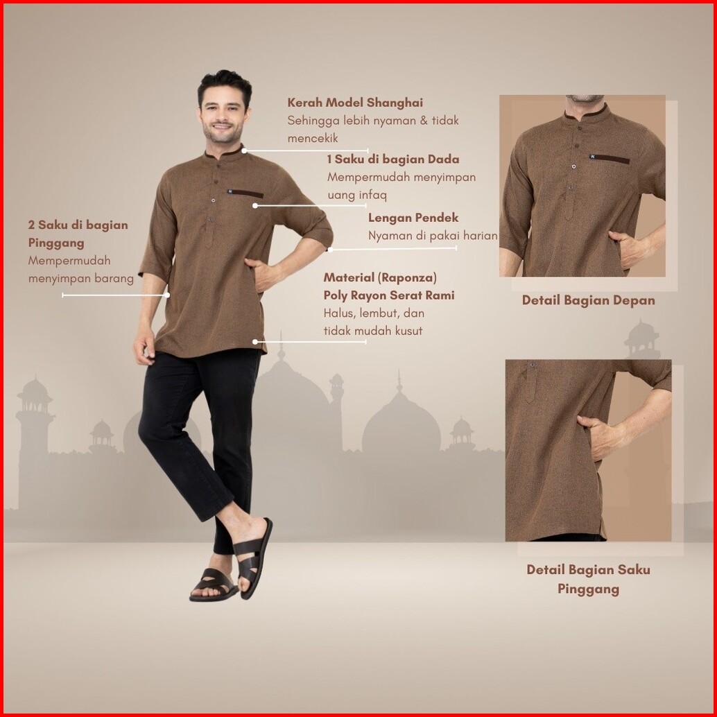 Alghaza Mubarak Kemeja Koko Kemko Arazzi Couple Warna Coklat Muda