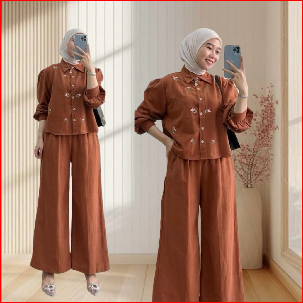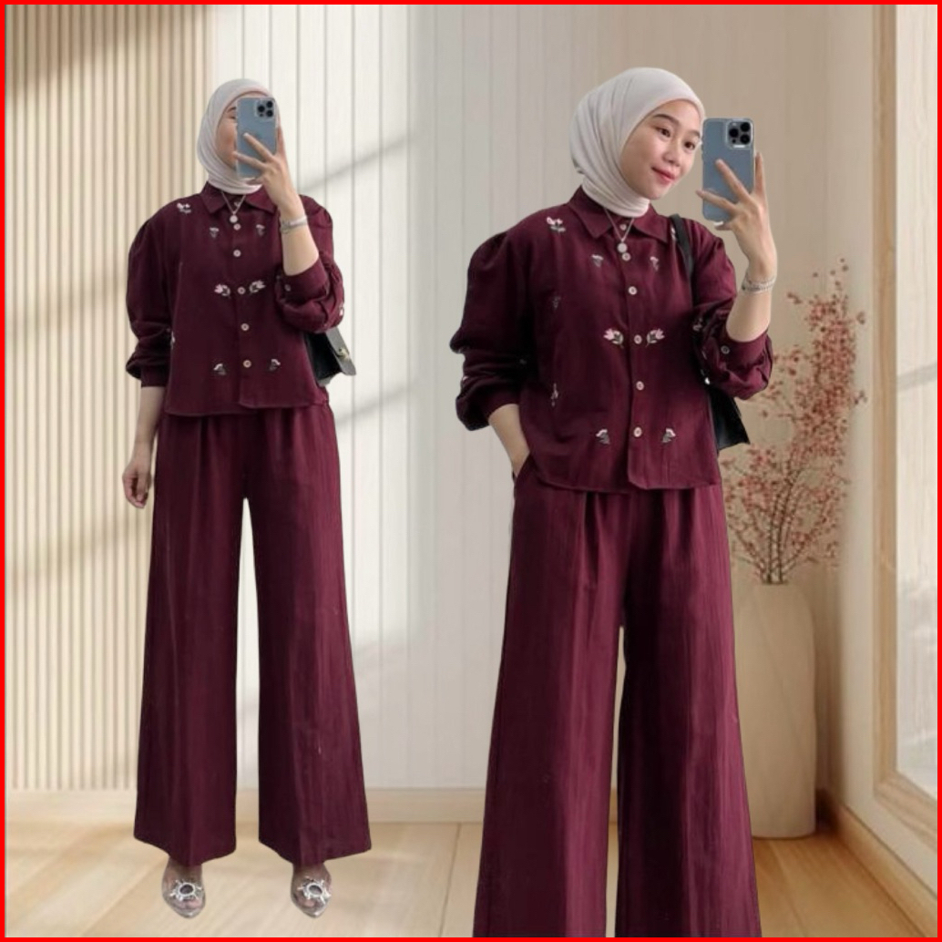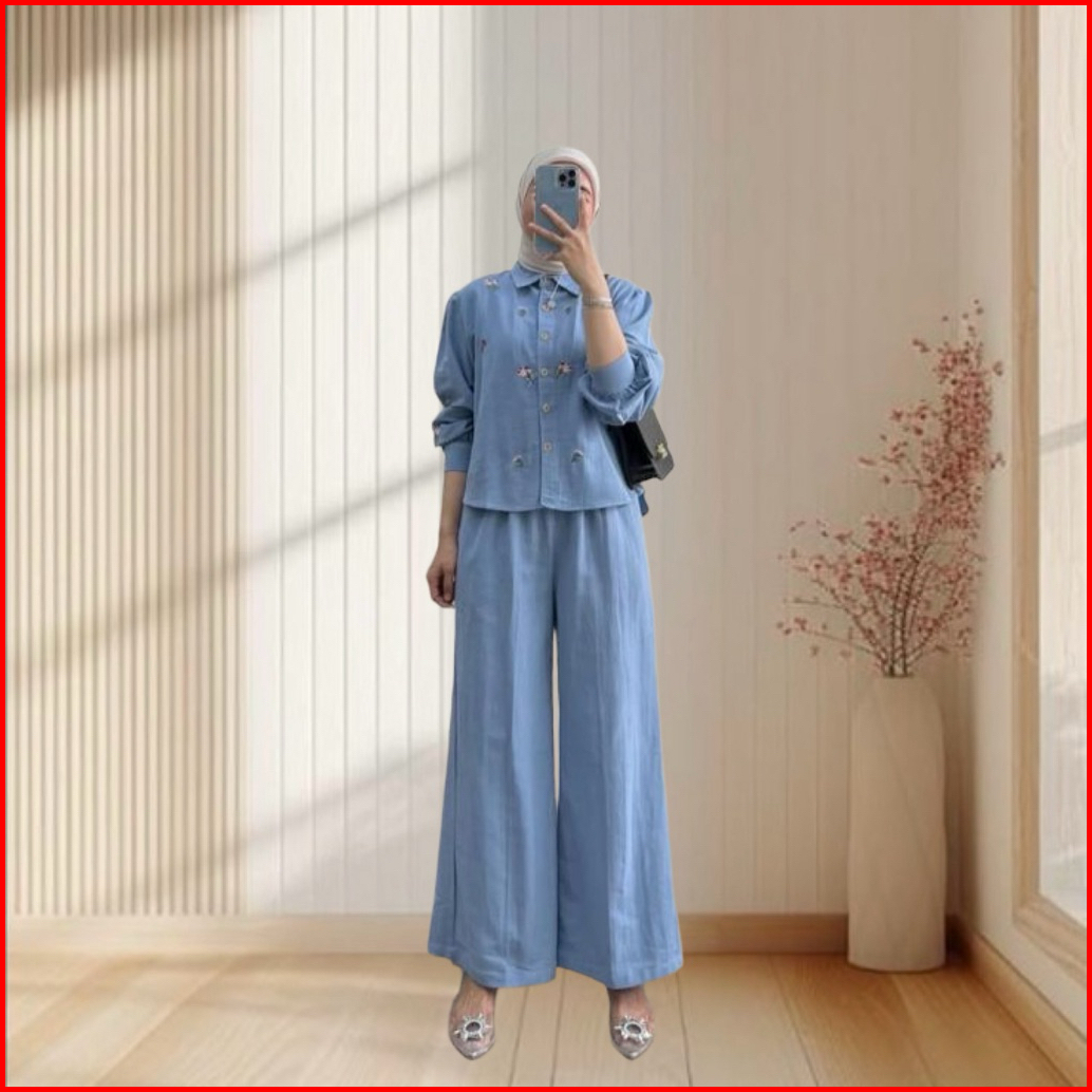 Geneaby - Cley One Set Wanita Bordir Bahan Crinkle Airflow Premium