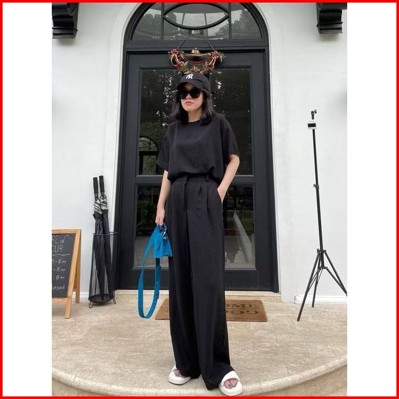 Loose Pants Trousers Wanita Celana Wanita Anti Kusut Celana Kantor Formal Kulot Crinkle Kulot Linen Highwaist
