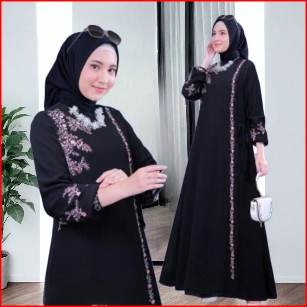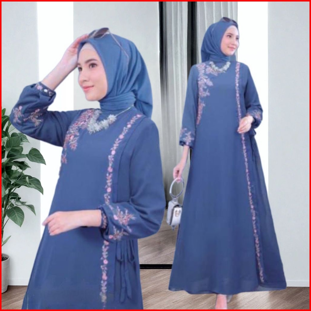 Geneaby - Ganis Dress Wanita Muslimah Gamis Bordir Bahan Crinkle Airflow Premium