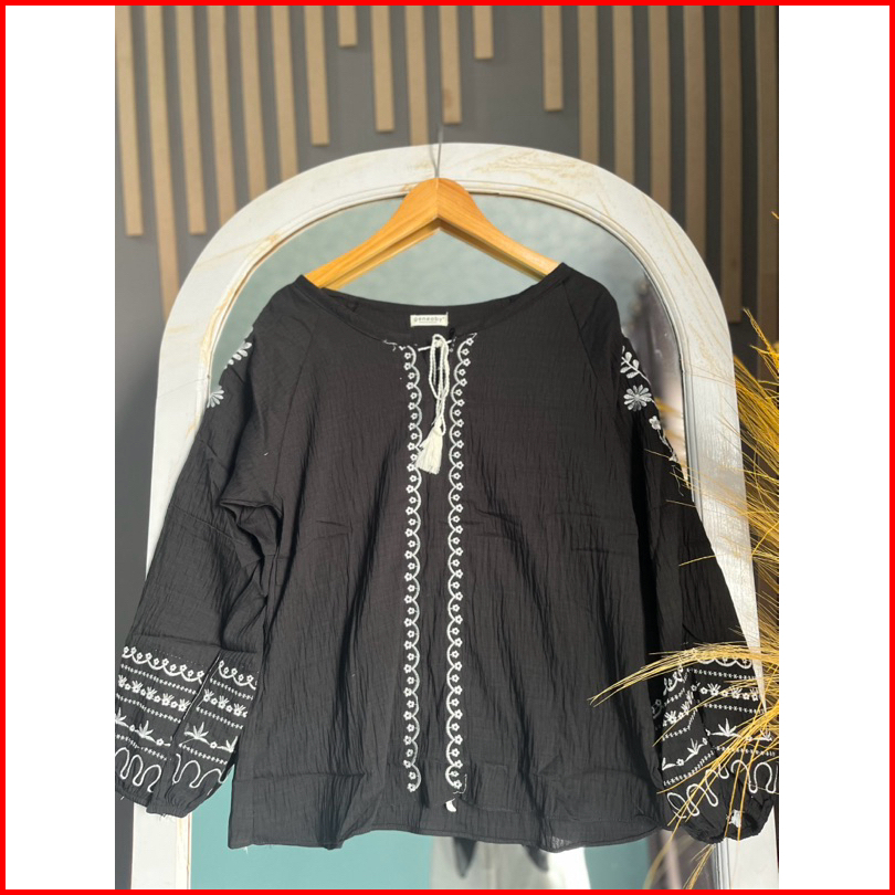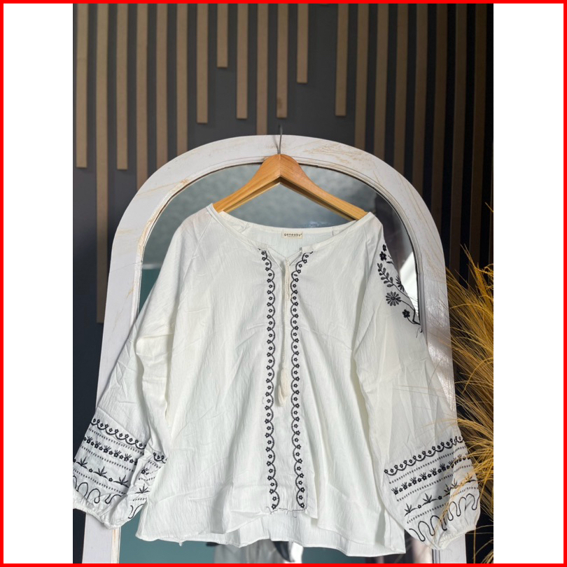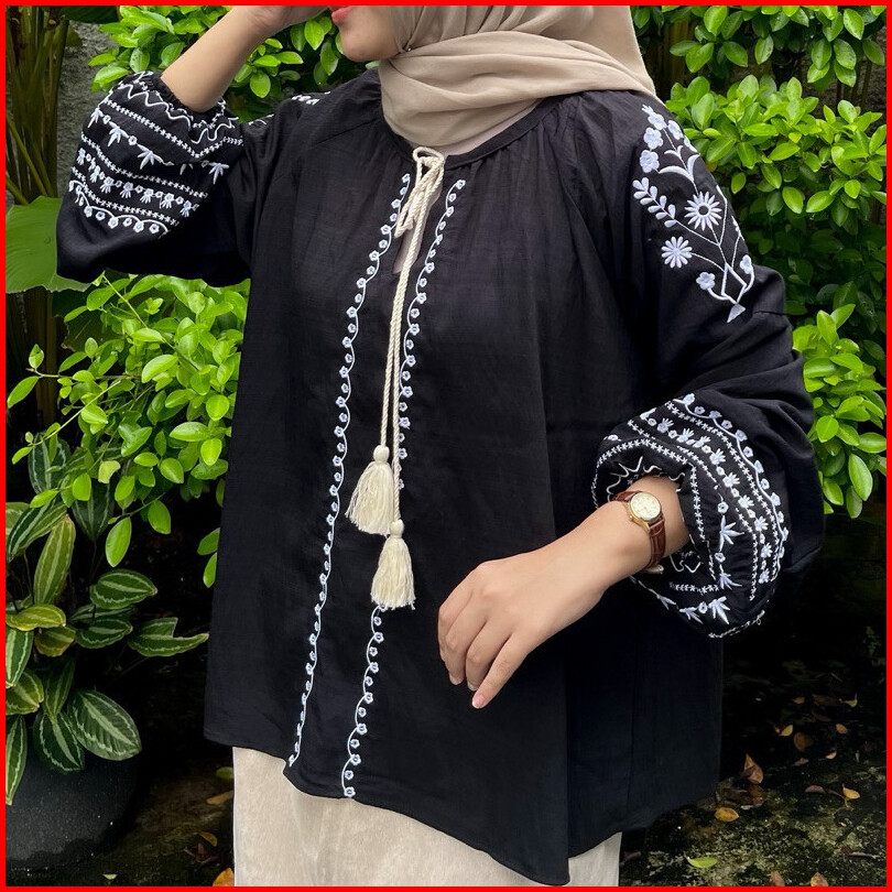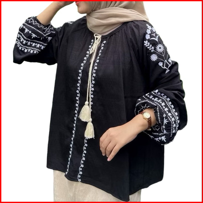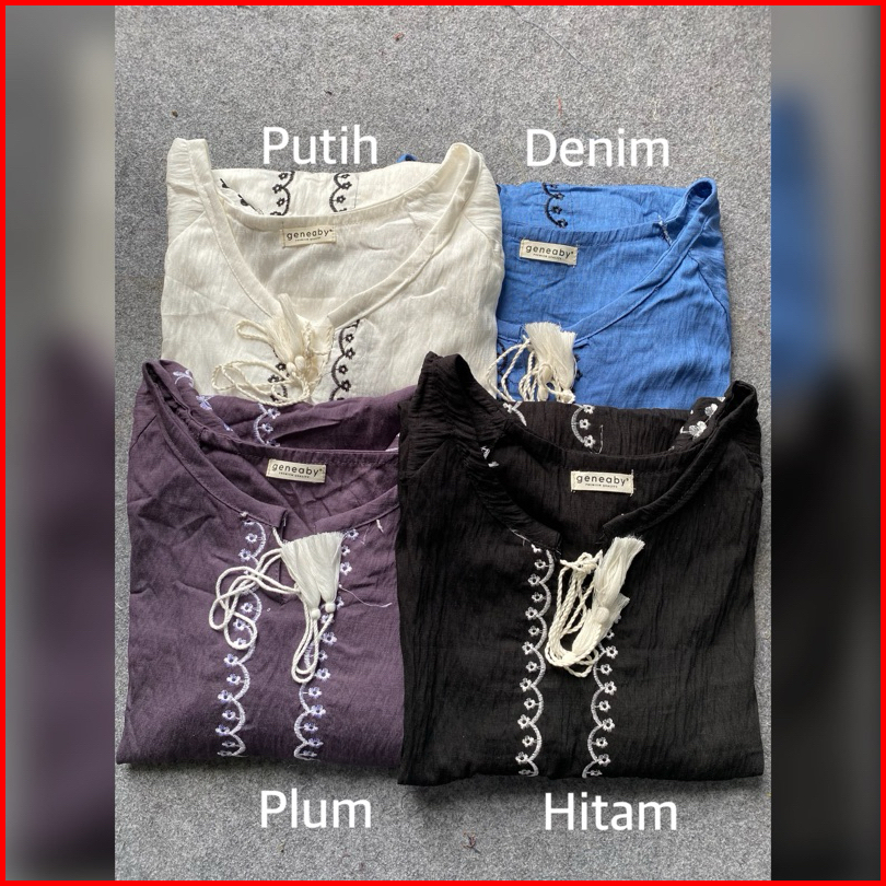 Geneaby - Sabrina Lili Blouse Wanita Emboidery Bahan Polo Linen Bordir Timbul