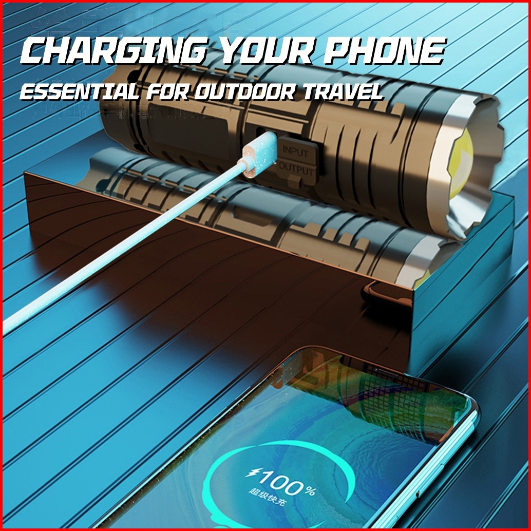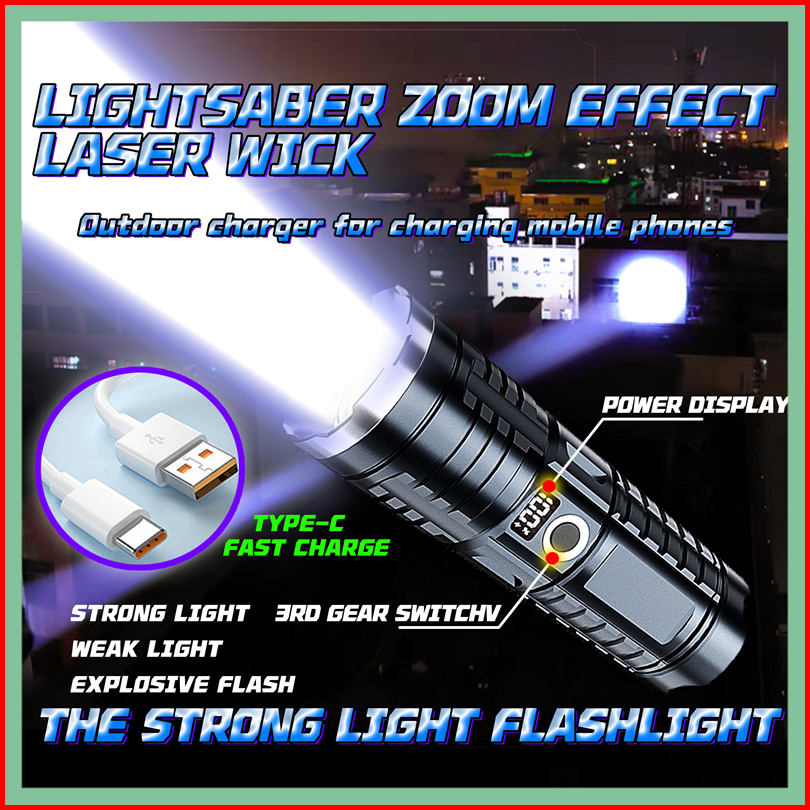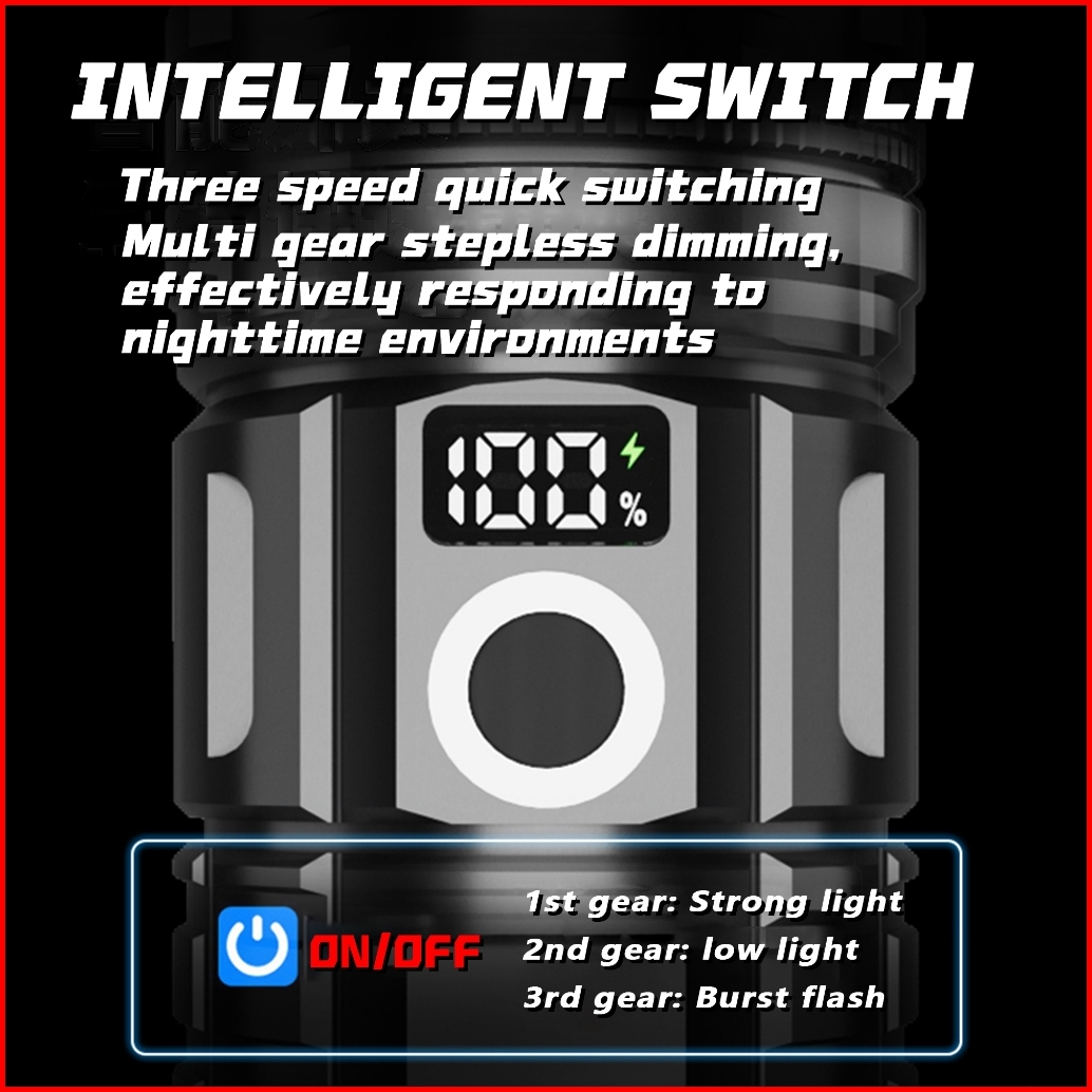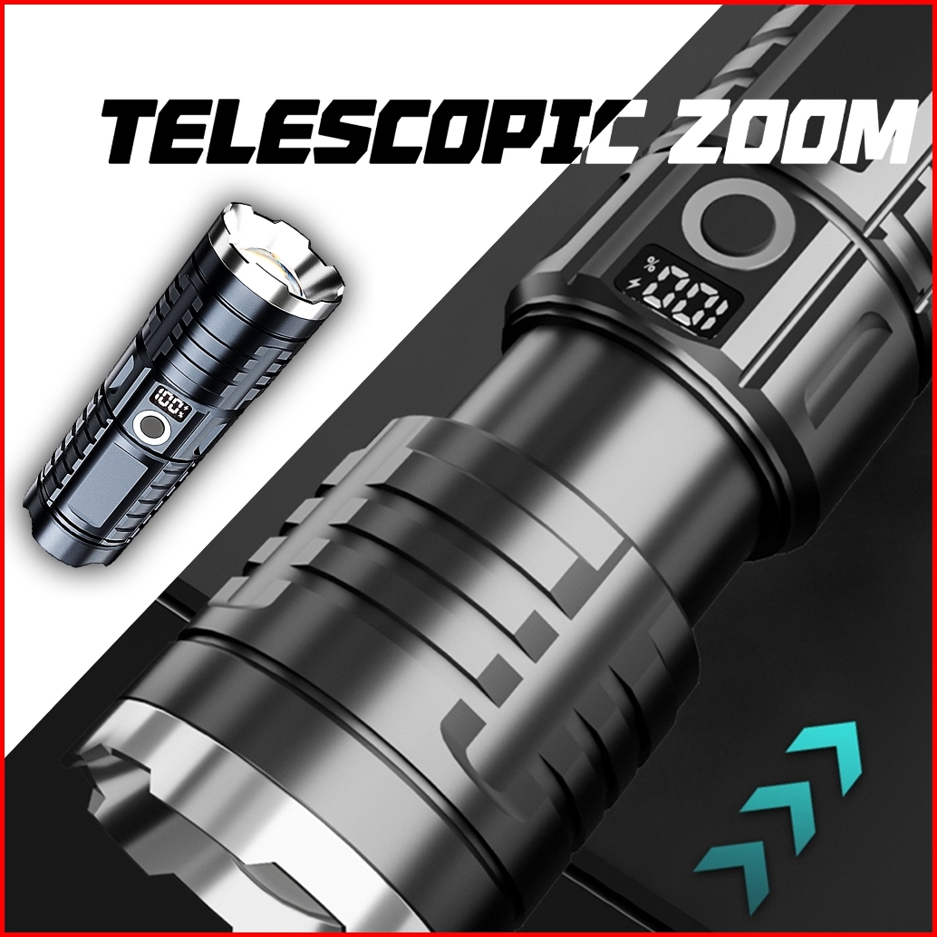 Senter Isi Ulang 916 Terlaris Baru 2024 Dengan Tampilan Digital Masa Pakai Baterai Super Kotak Senter Multi-kecepatan Ya