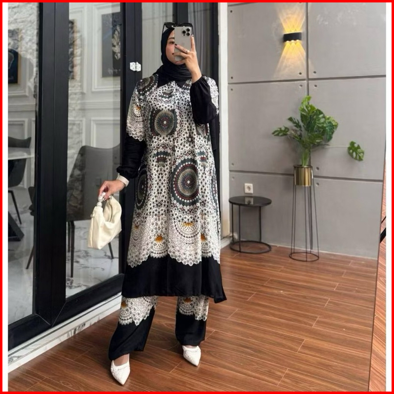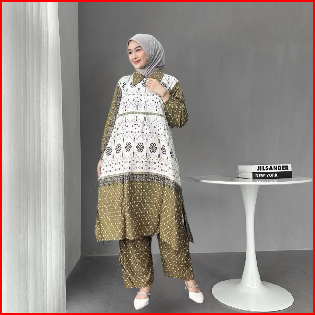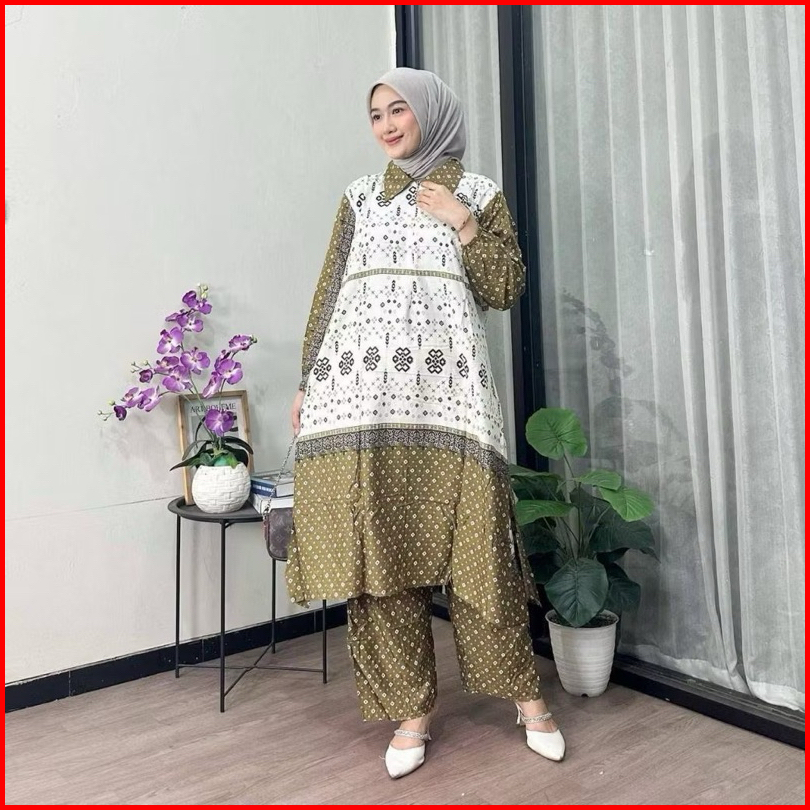 Geneaby - Alisa Setelan Tunik Wanita Motif Bahan Rayon Premium