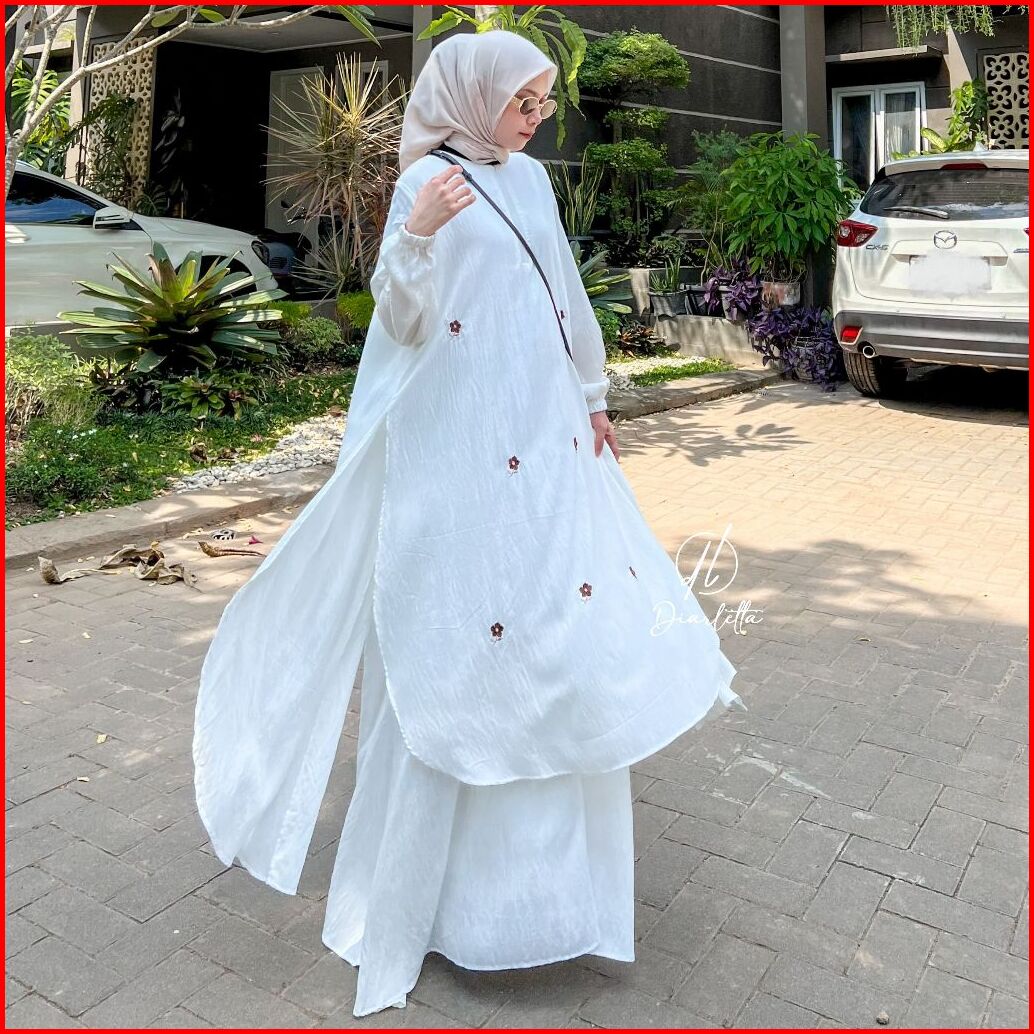 Kamari Dress Abaya Embordery Double Layer Polo Linen Busu Friendly Gamis Outer Viral By Diarletta