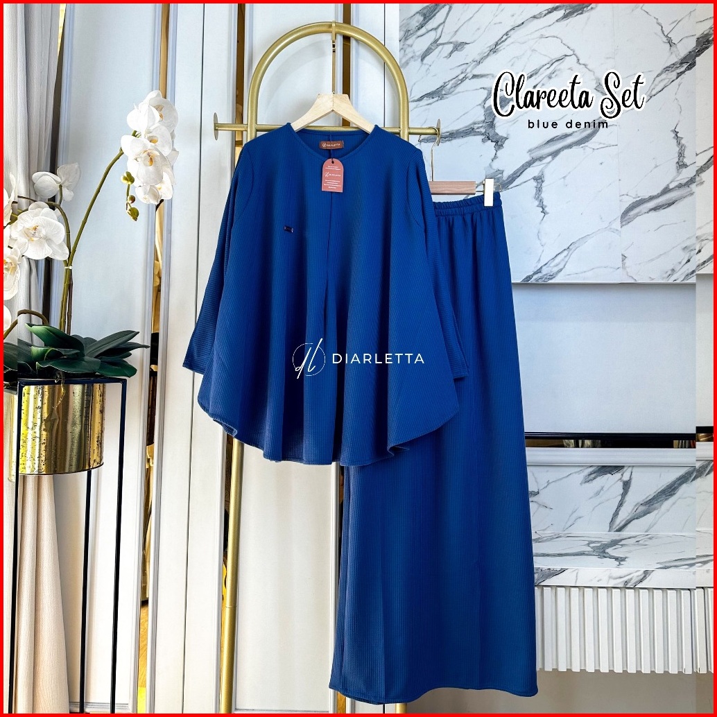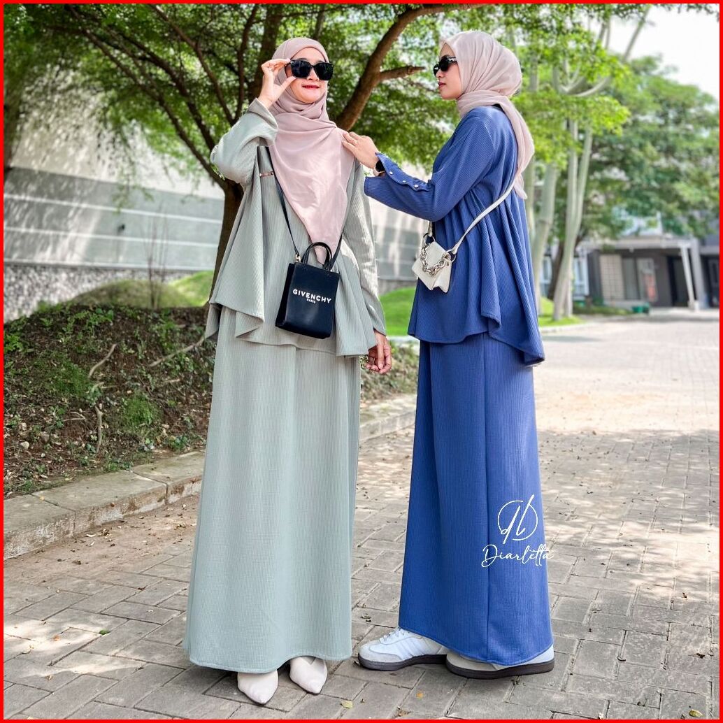 Clareeta Set Rok Top Peplum Knit Waffle Lengan Variasi Kancing Busui Friendly Wudhu Friendly By Diarletta