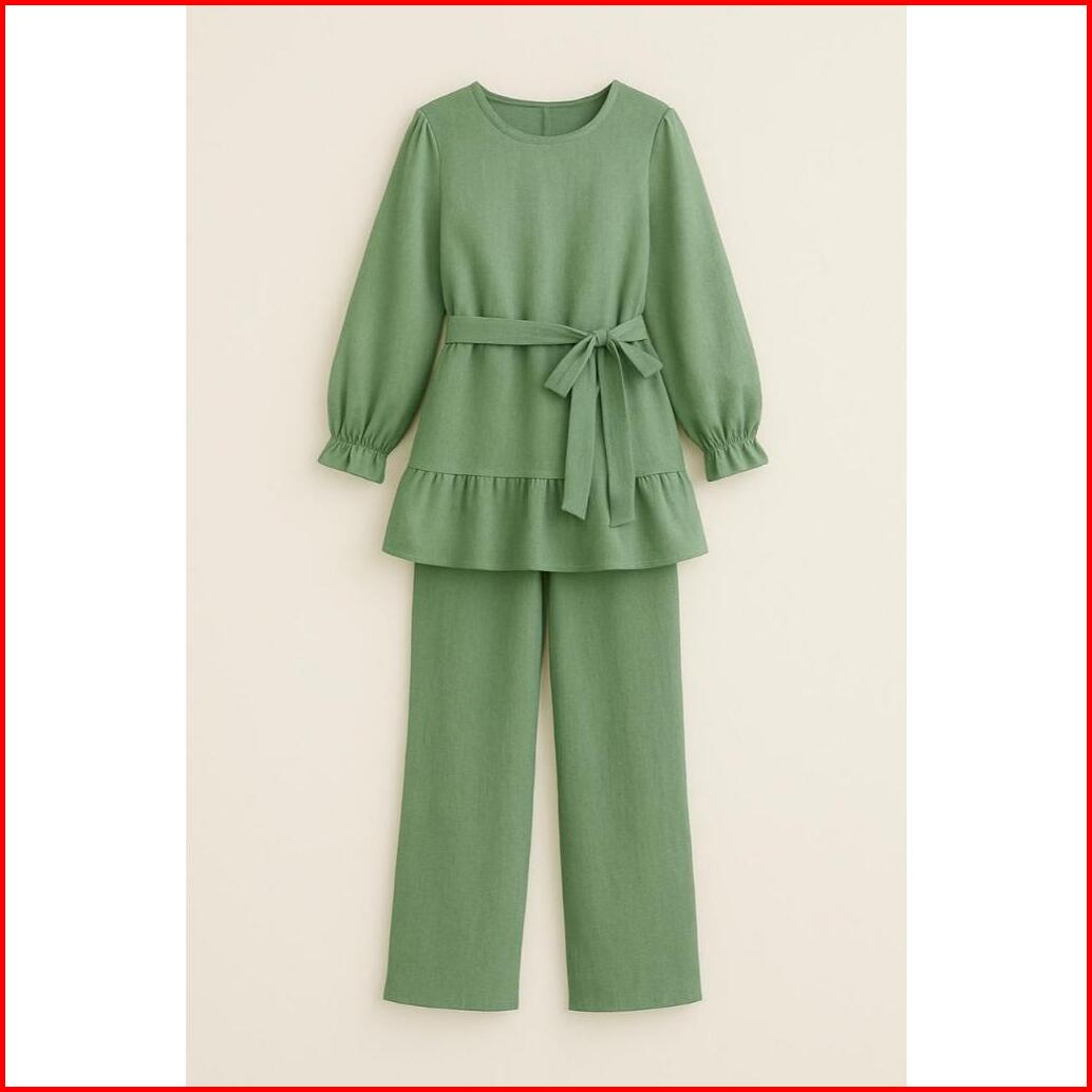 Setelan Wanita Dewasa Kekinian Viral Tunik Celana Bahan Linen Stylish Terbaru Terlaris Termurah