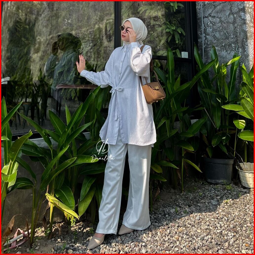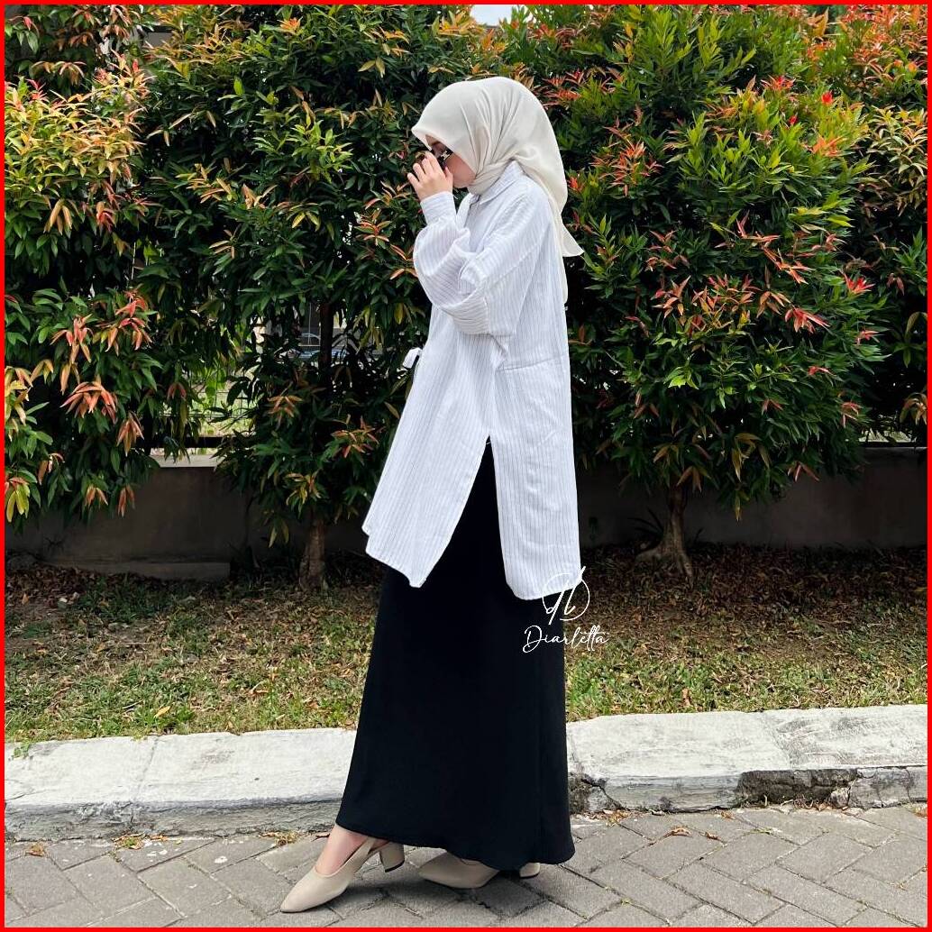 Melvin Shirt Stripe Linen Semiwoll Oversize Shirt Korean Style Elegant By Diarletta