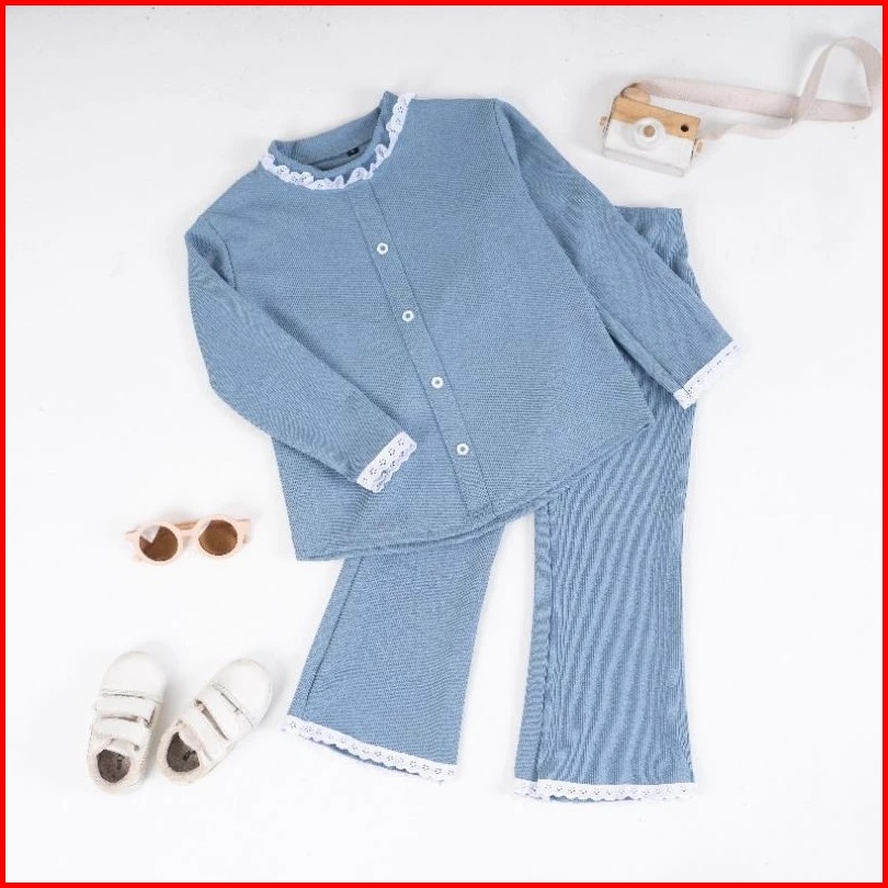 Paket Bundling One Set Jennie Top Flare With Lace - Fashion One Set Anak Perempuan Usia 242 Tahun Bahan Knit Premium 202